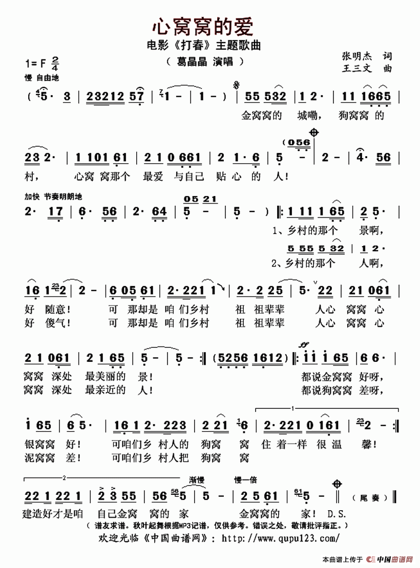 作词:张明杰 作曲:王三文 演唱:葛晶晶