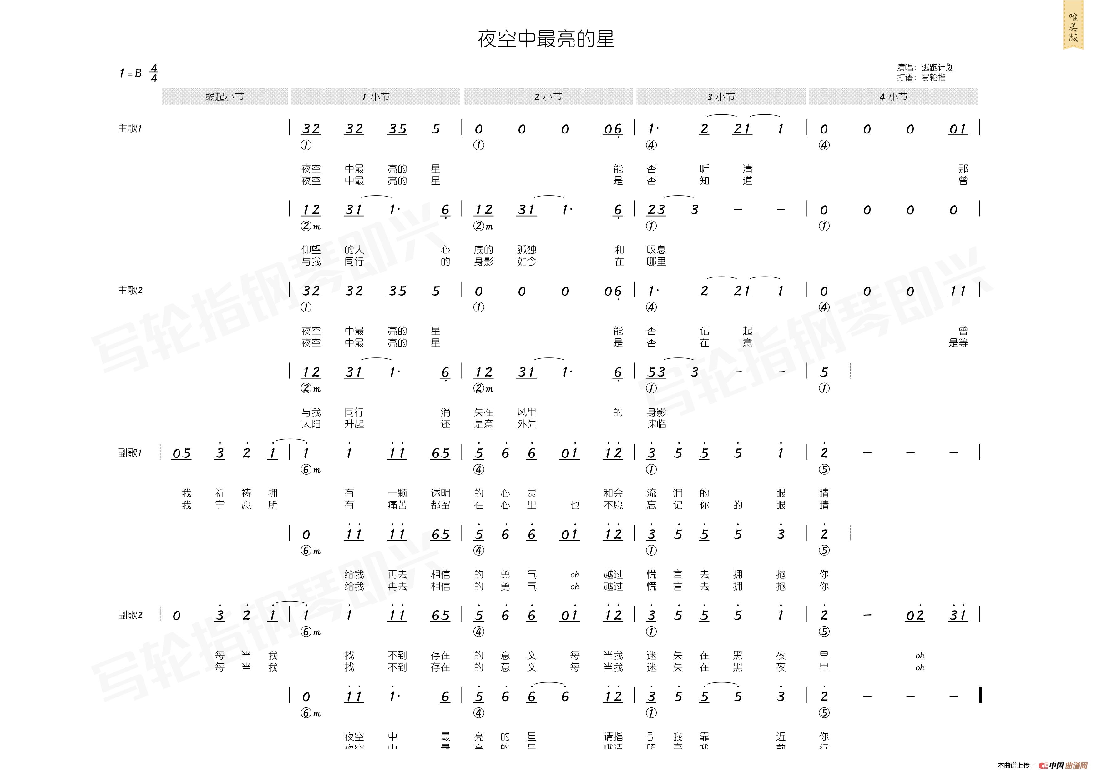 1.乐谱分为三类:专业版(适合老手)、唯美版(适合新手)、弹唱版(仅用于弹唱)。
