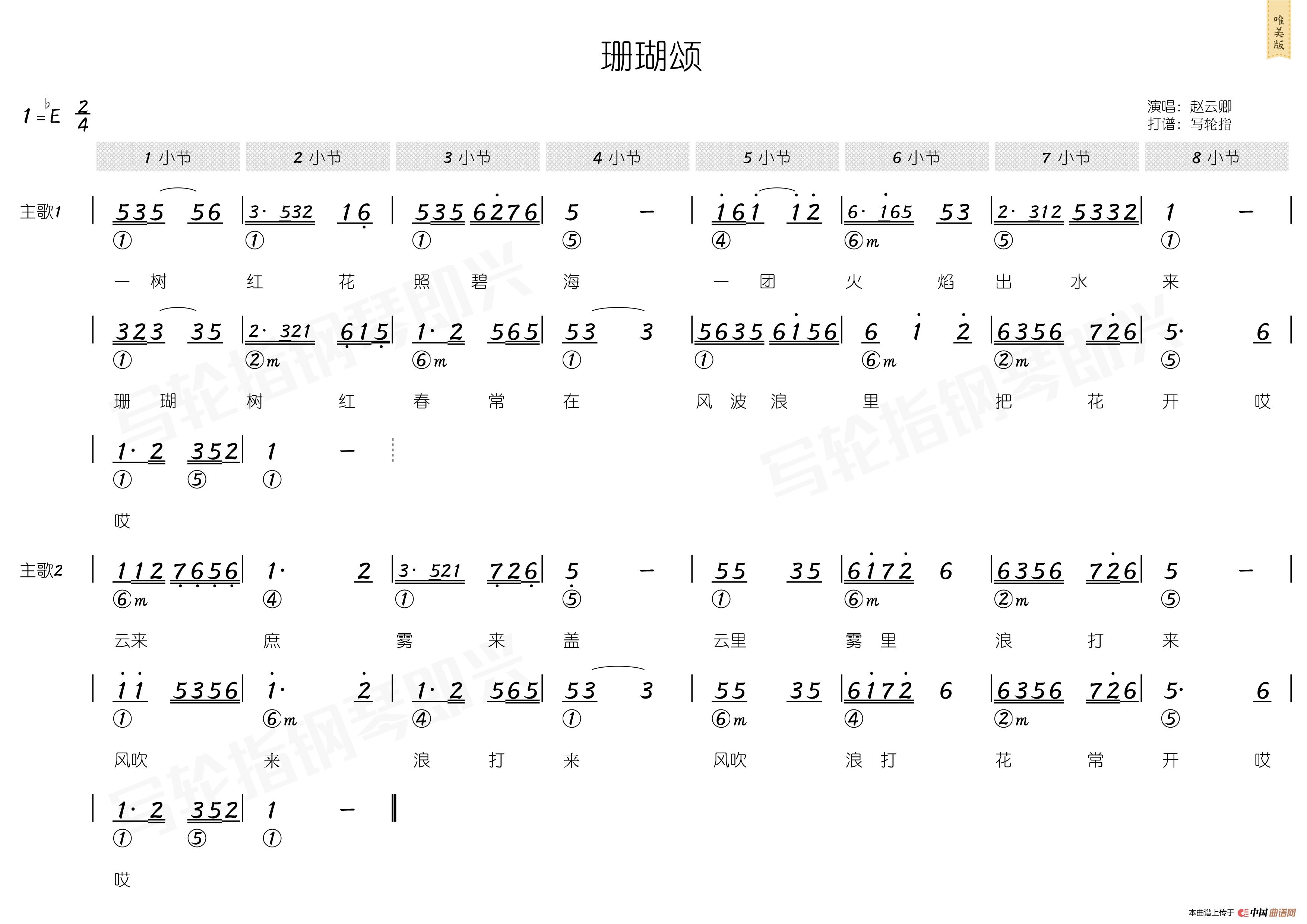 提示:在曲谱图片上单击右键,选择"图片另存为..."即可将曲谱保存到您的电脑中,打印时候可将图片插入到WORD中,调整合适大小打印即可。