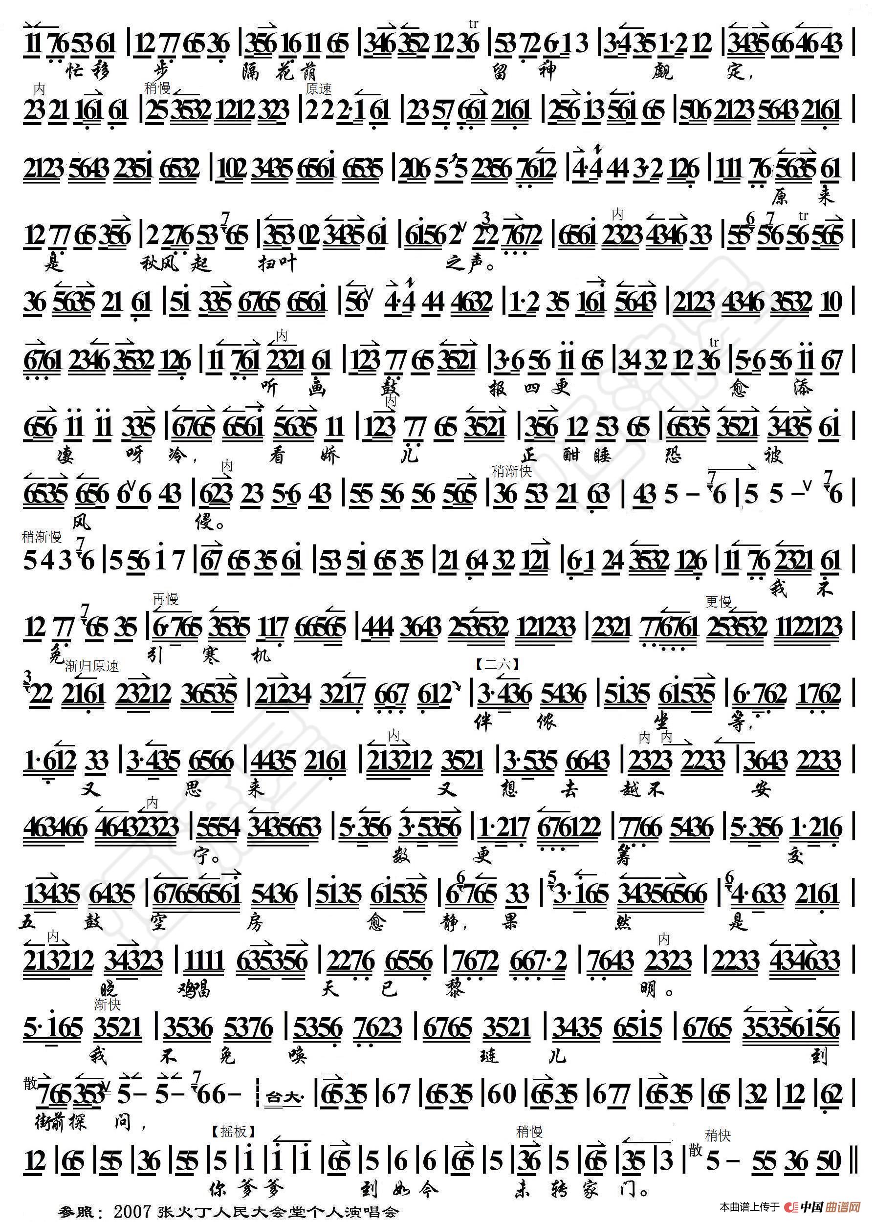 关于《荒山泪·谯楼上二更鼓声声送听》曲谱的评论