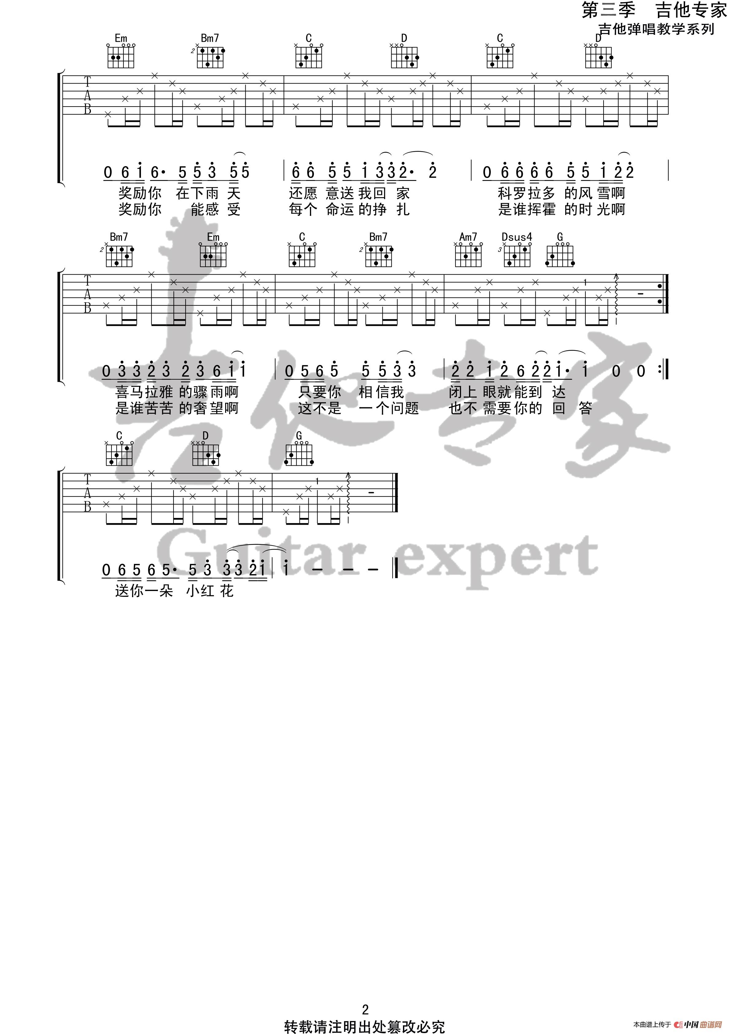 送你一朵小红花 原版吉他谱