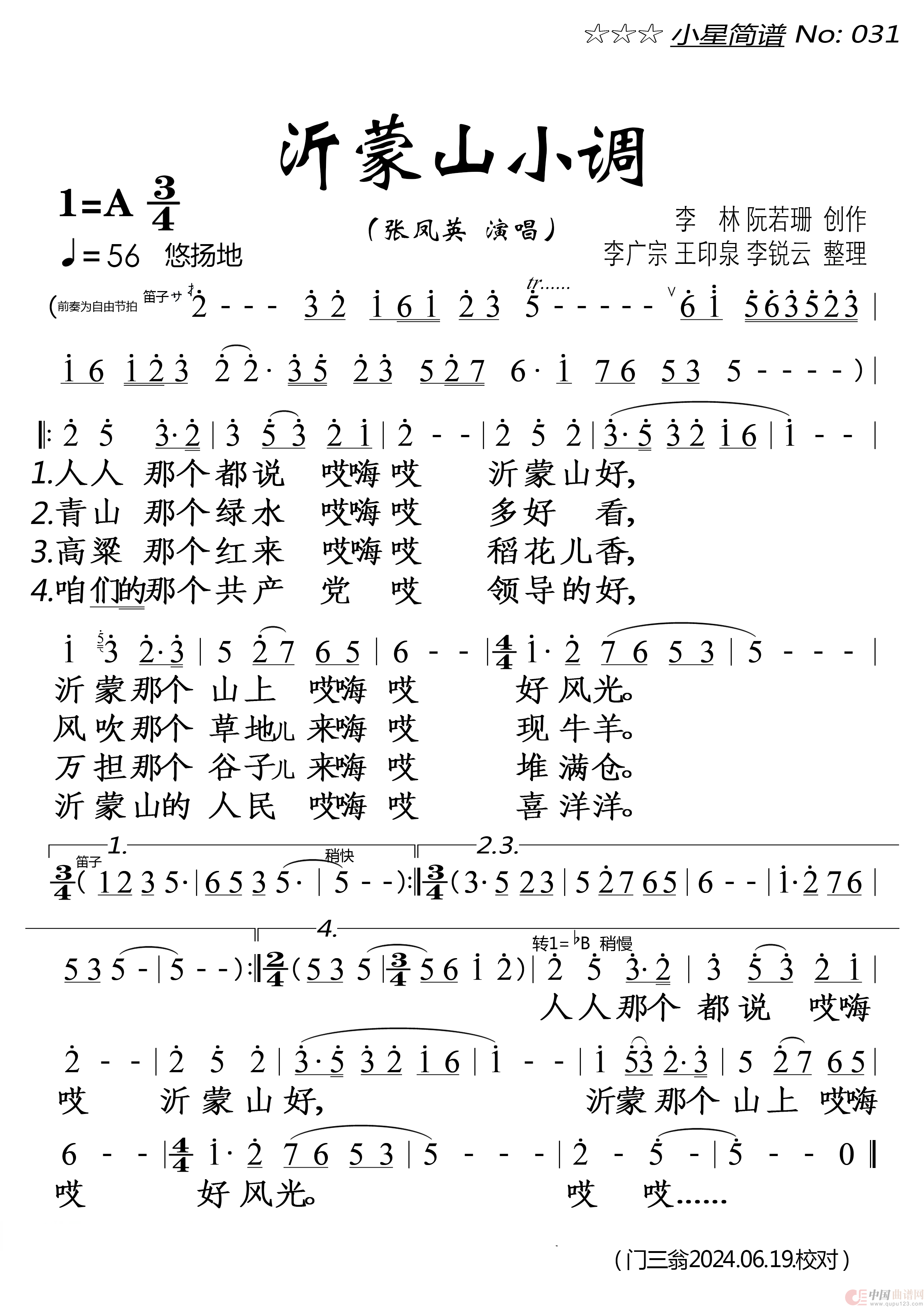 关于《沂蒙山小调》曲谱的评论