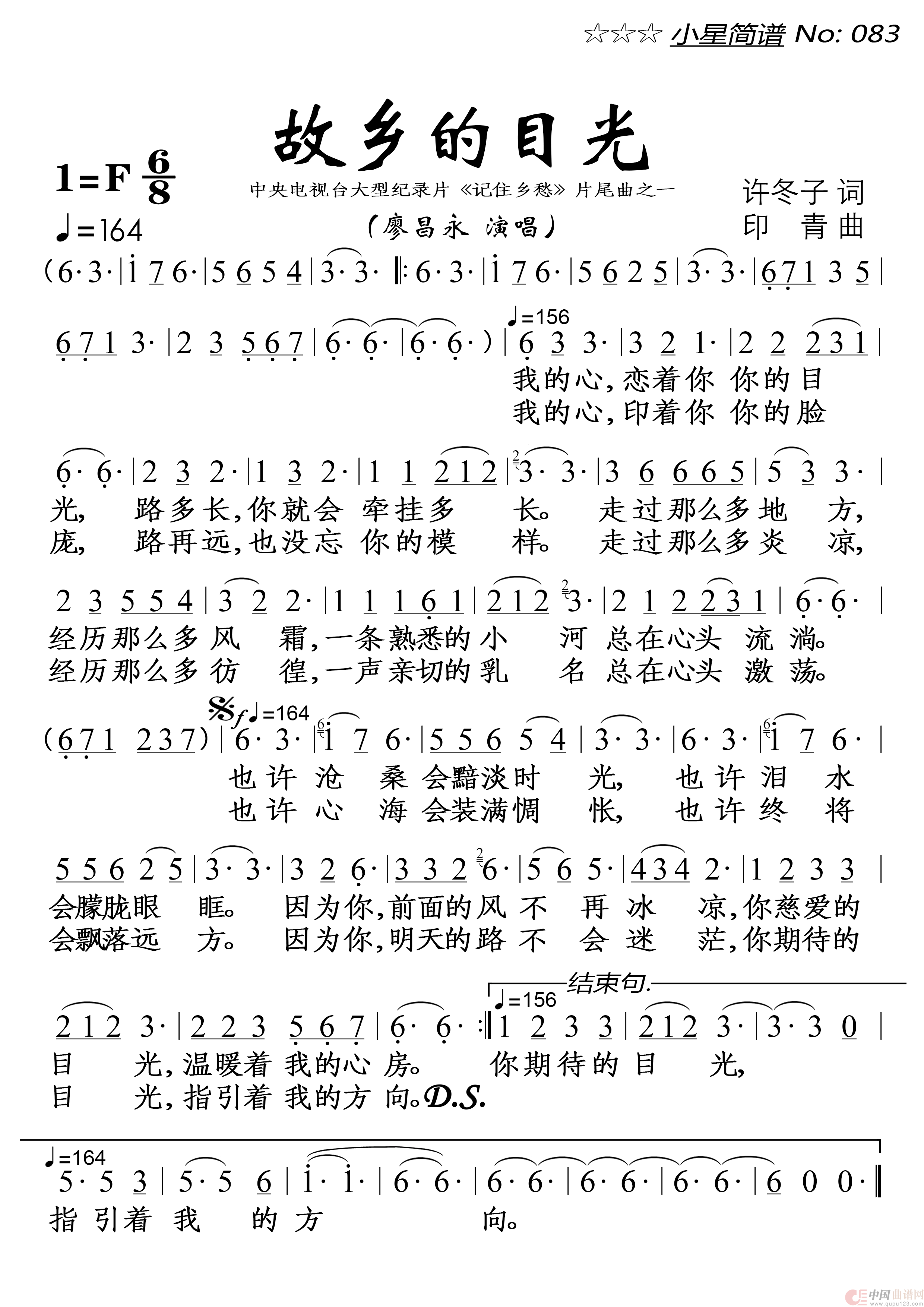 关于《故乡的目光》曲谱的评论