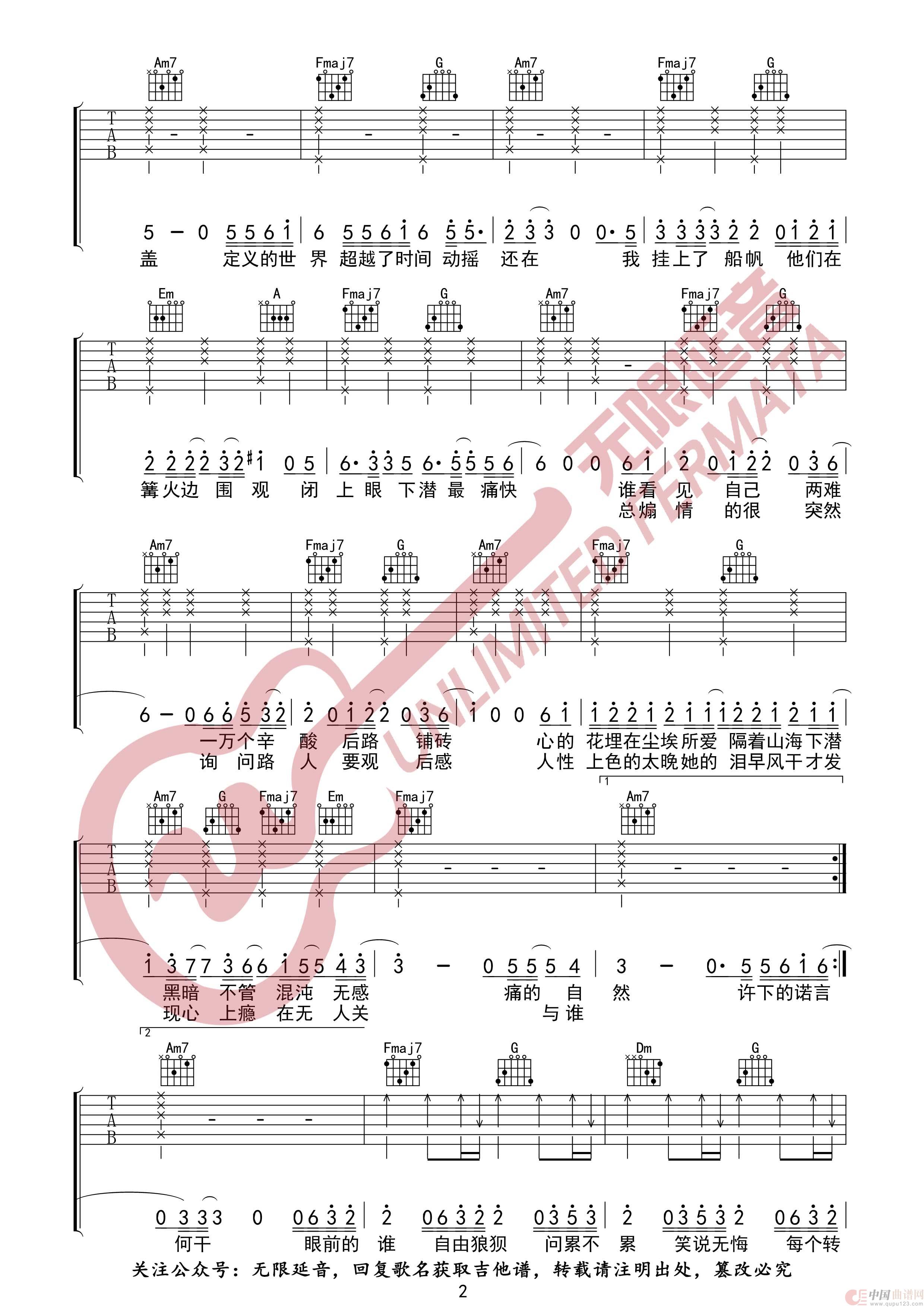 下潜 川青/Moreare 吉他谱(无限延音编配)