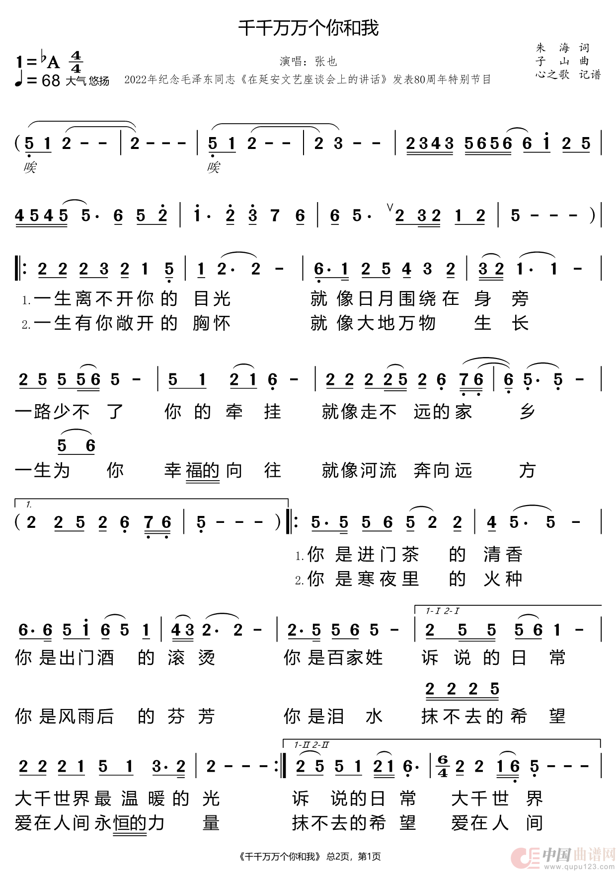 关于《千千万万个你和我》曲谱的评论