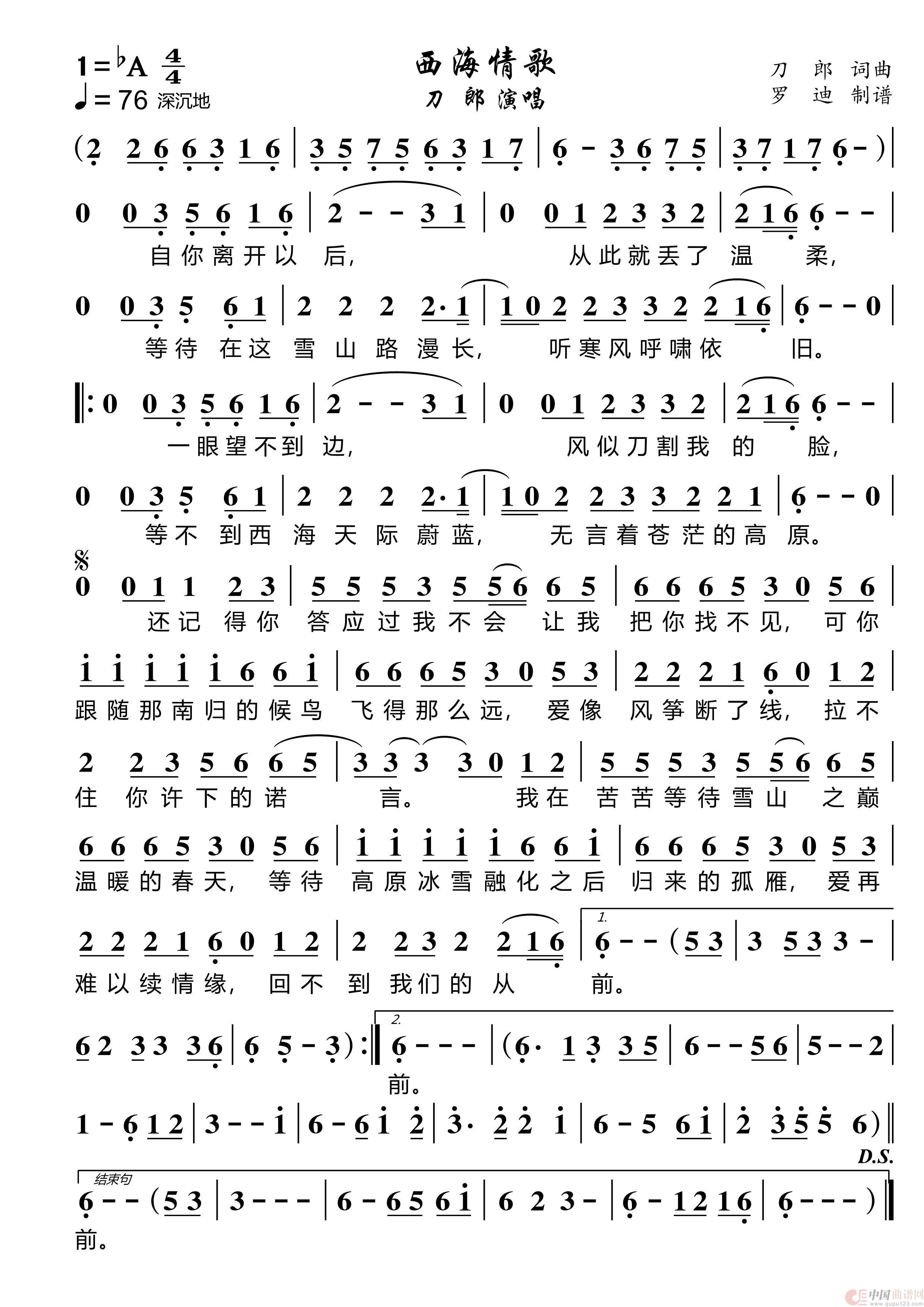 作词:刀郎   作曲:刀郎   演唱(奏):刀郎   来源:根据刀郎演唱记谱   上传:罗迪   日期:2023-08-09   浏览次数: