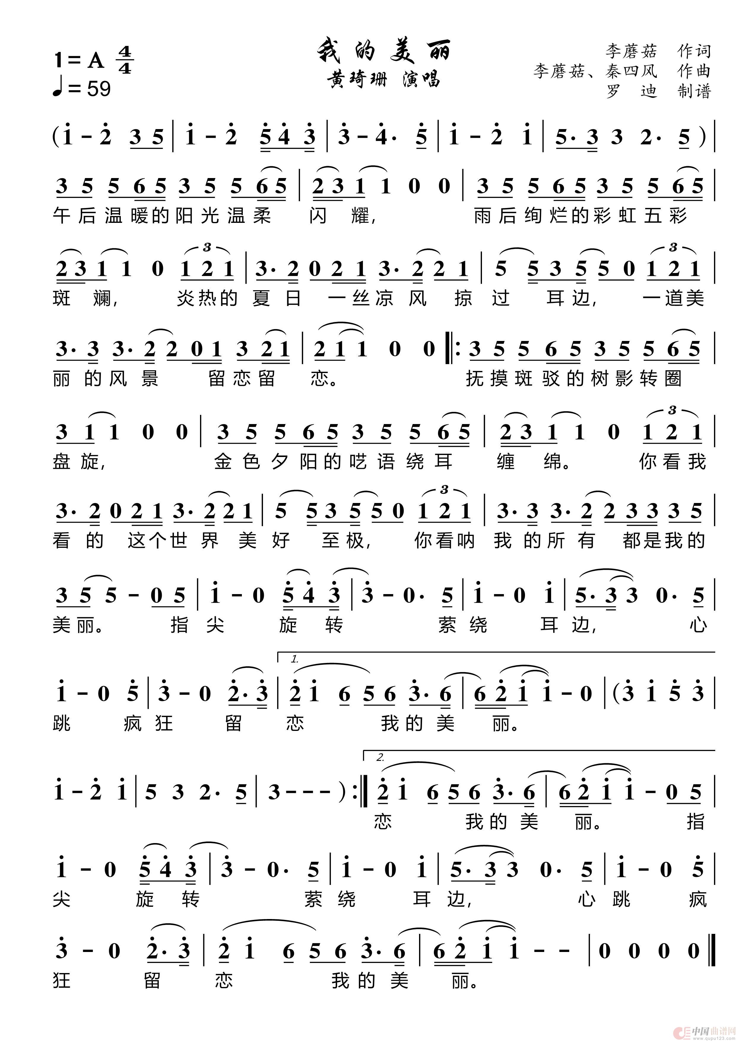 作词:李蘑菇 作曲:李蘑菇、秦四风 演唱(奏):黄琦珊 来源:根据黄琦珊演唱记谱 上传:罗迪