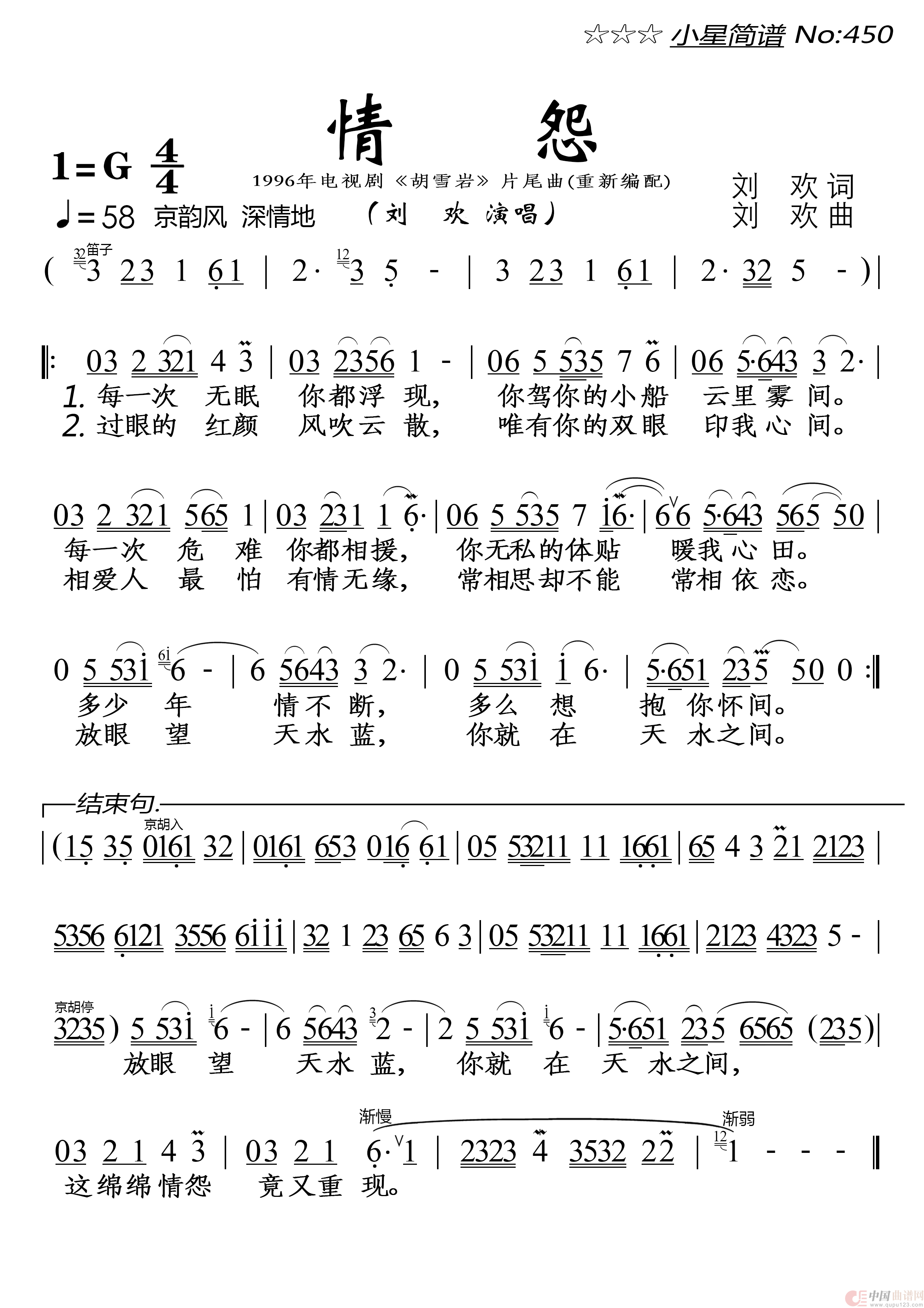 关于《情怨》曲谱的评论