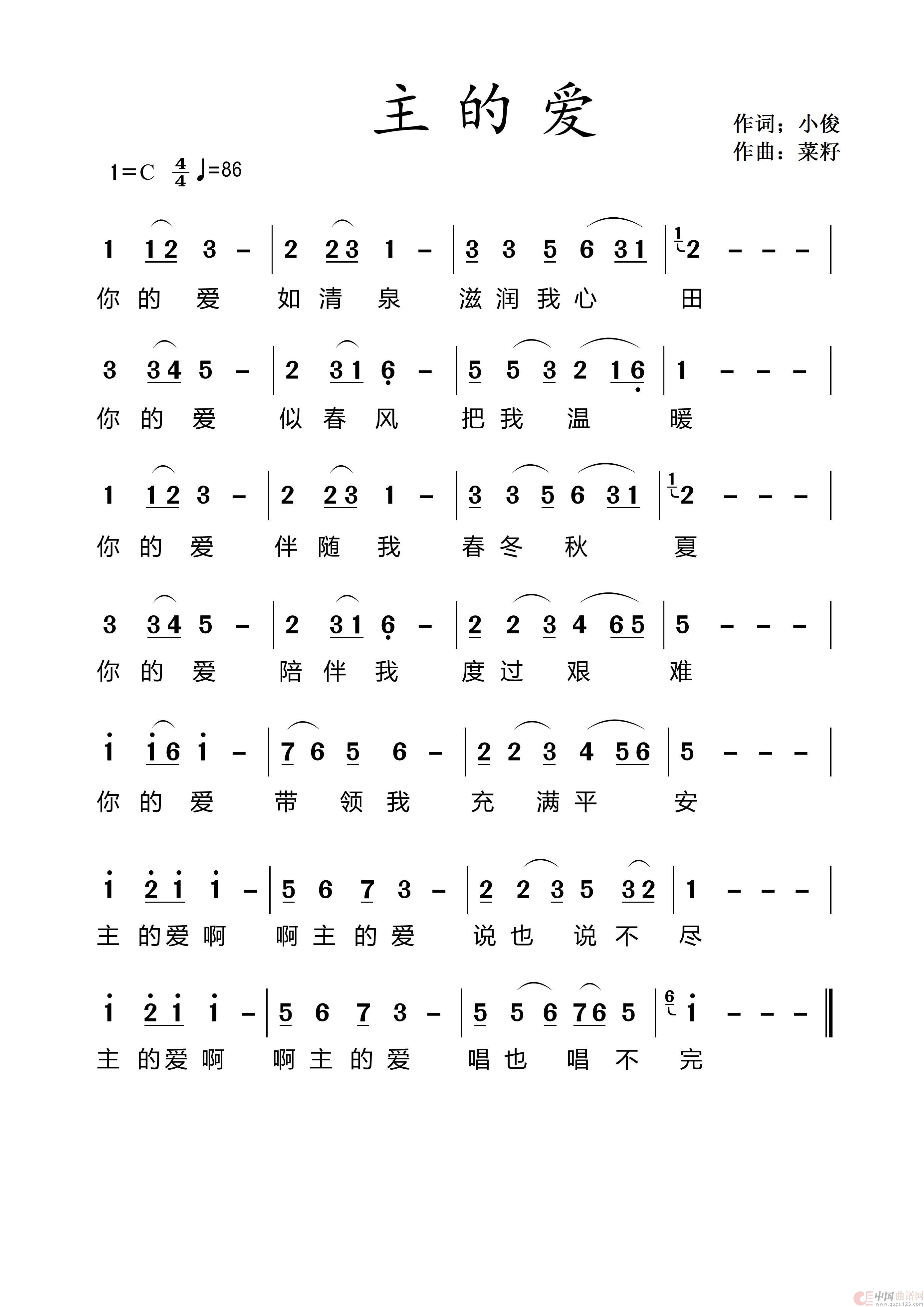 关于《65主的爱》曲谱的评论