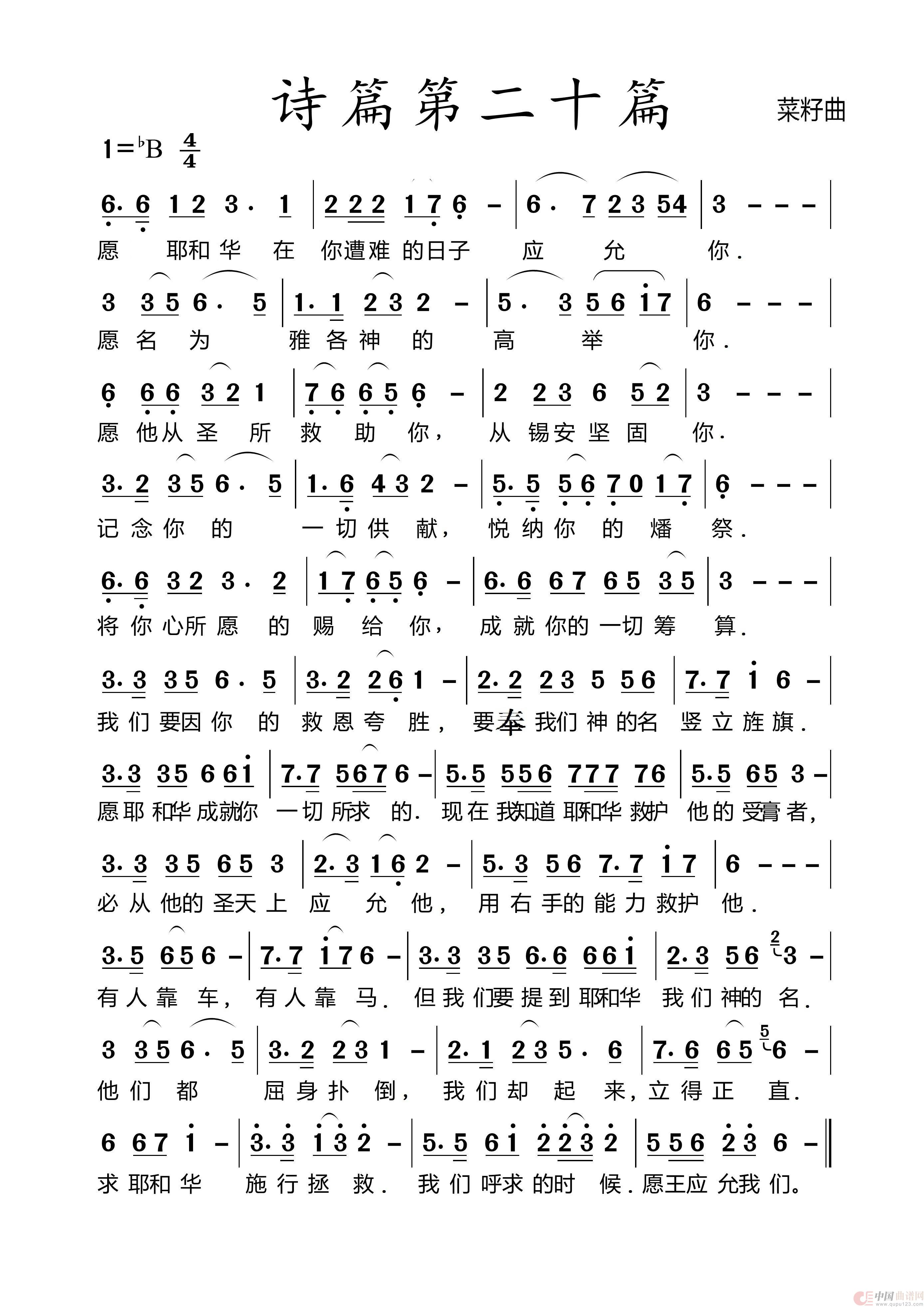 关于《220诗篇第20篇》曲谱的评论