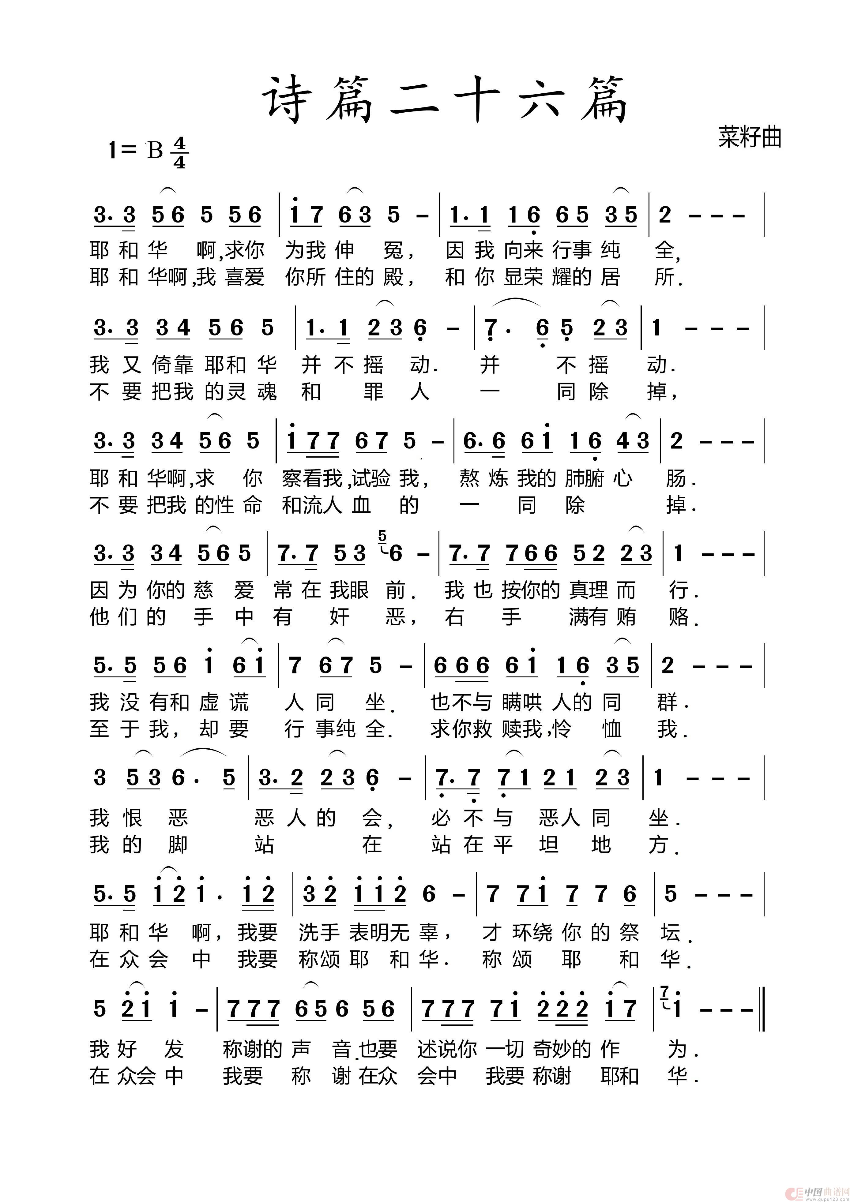 关于《226诗篇第26篇》曲谱的评论
