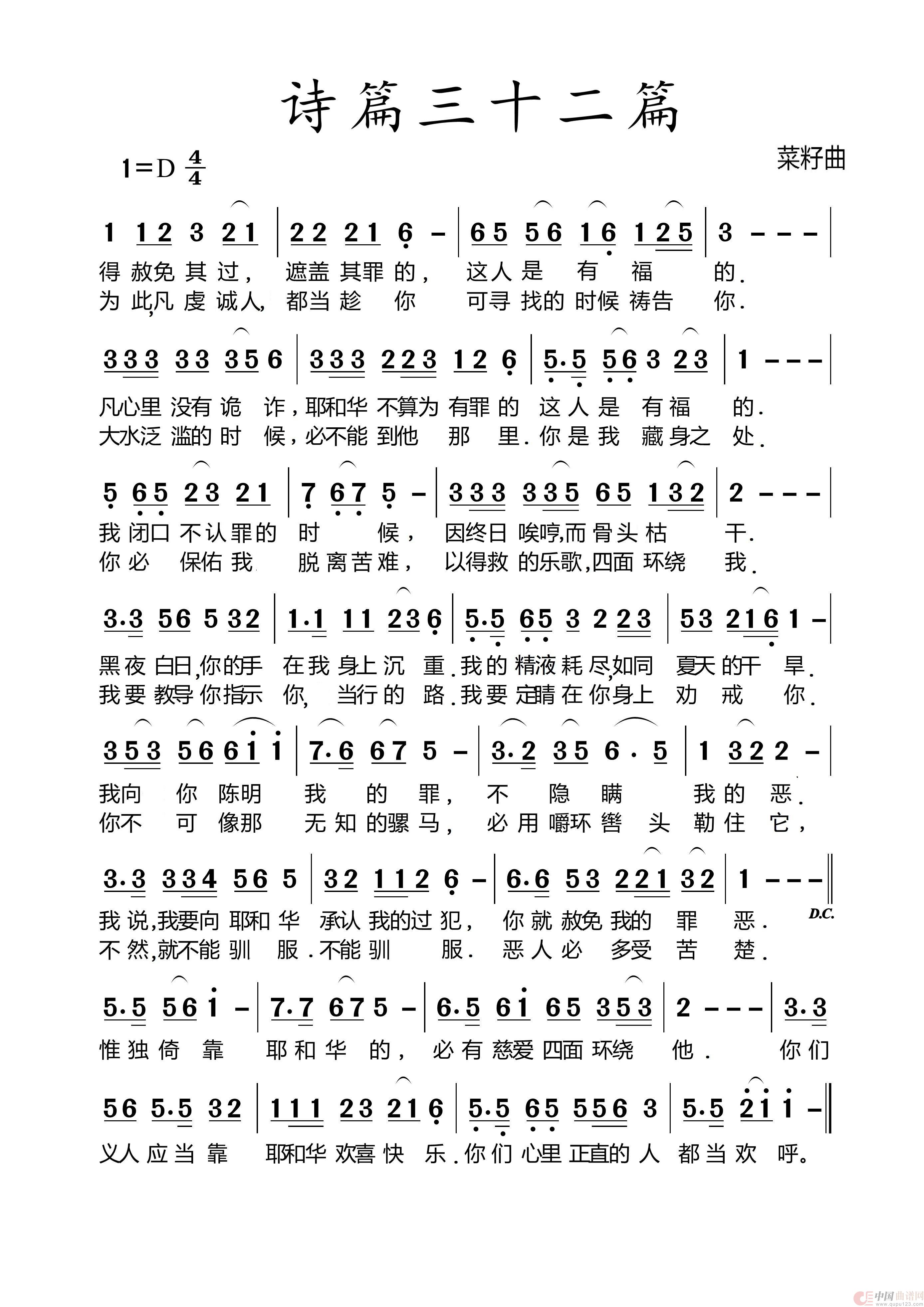 关于《232诗篇第32篇》曲谱的评论