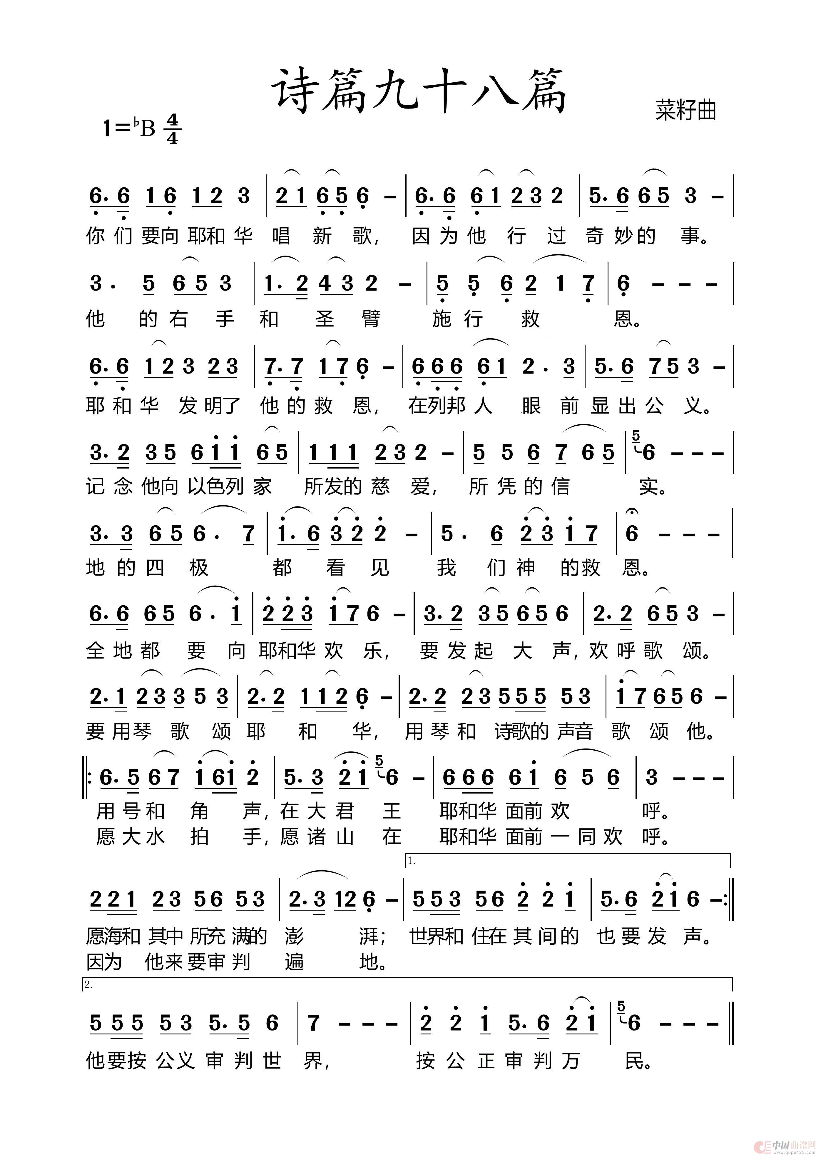 关于《298诗篇第98篇》曲谱的评论