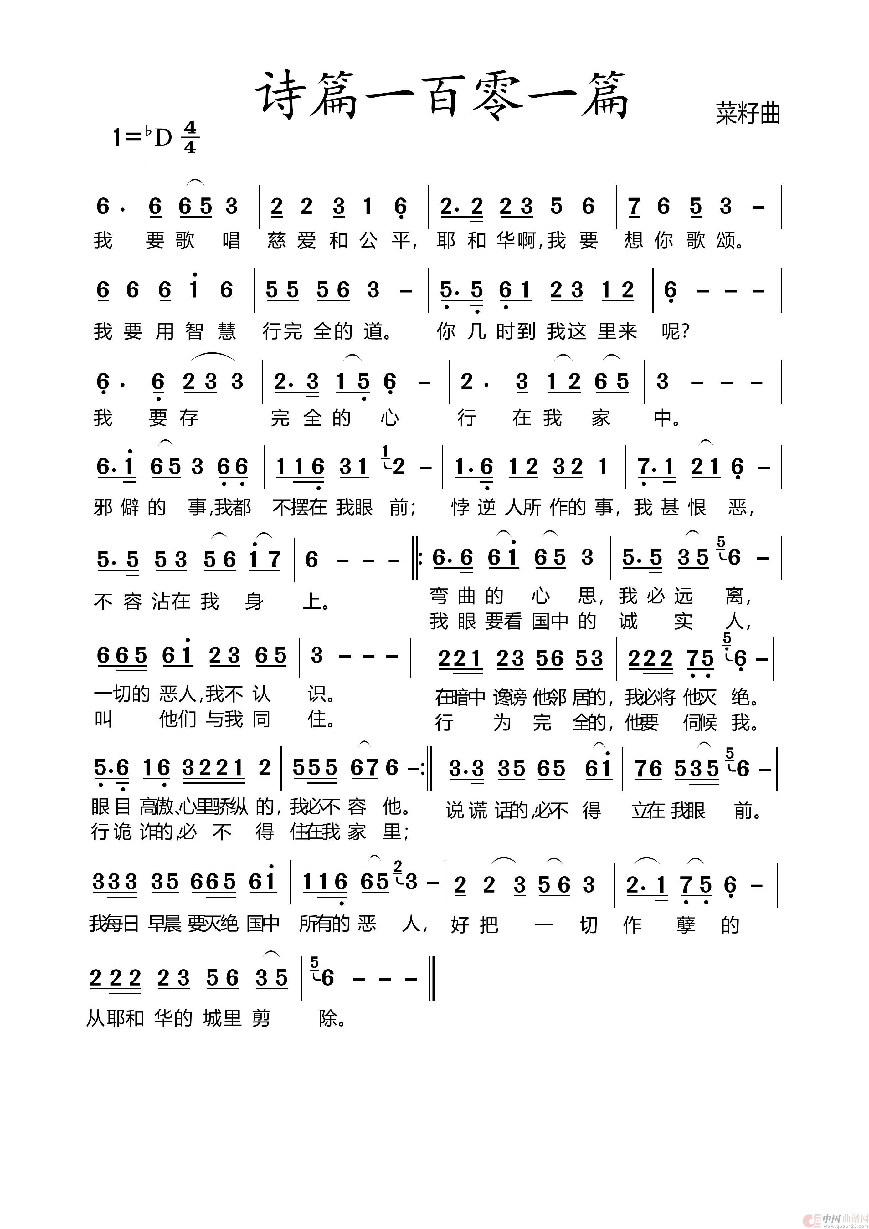 关于《301诗篇第101篇》曲谱的评论