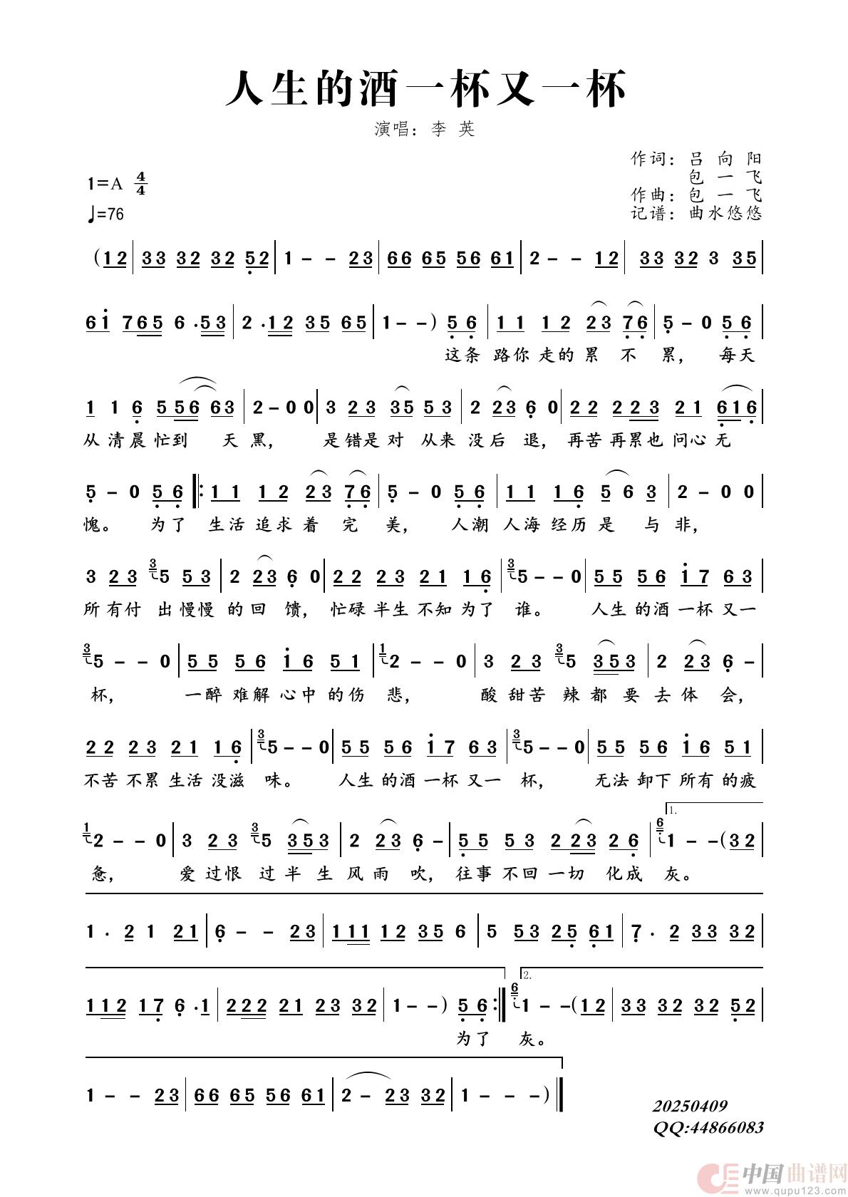 关于《人生的酒一杯又一杯》曲谱的评论