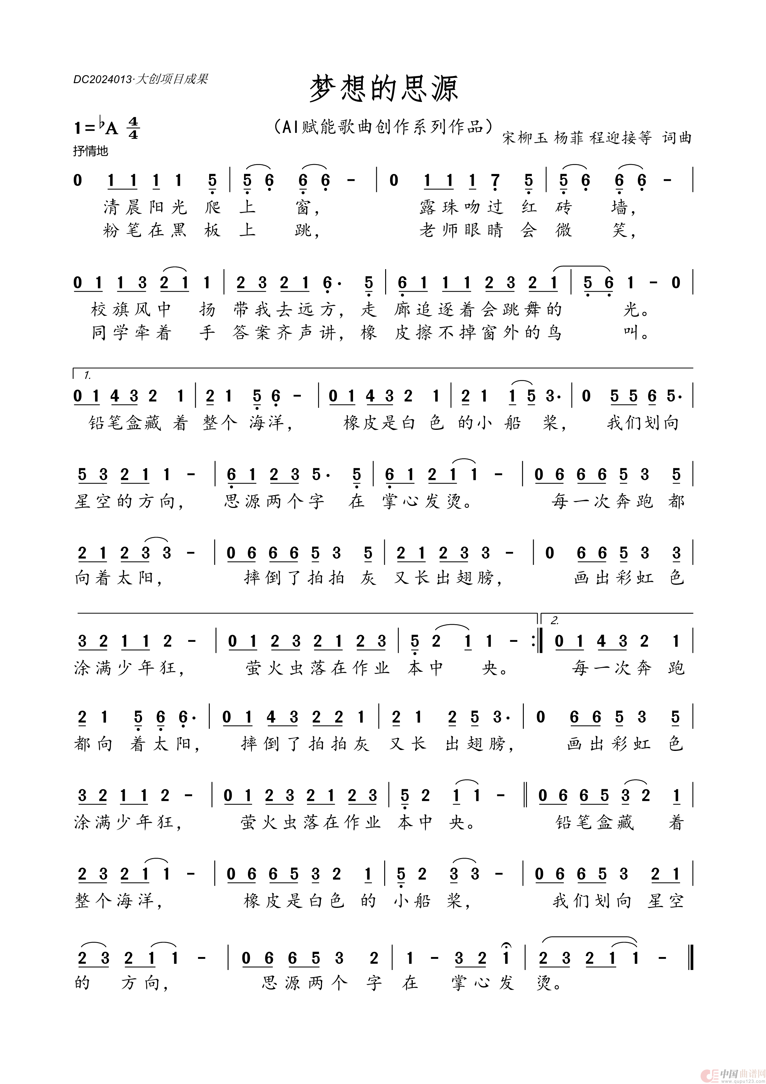 作词:宋柳玉、杨菲、程迎接 作曲:宋柳玉、杨菲、程迎接 来源:谱友程迎接上传 上传:程迎接