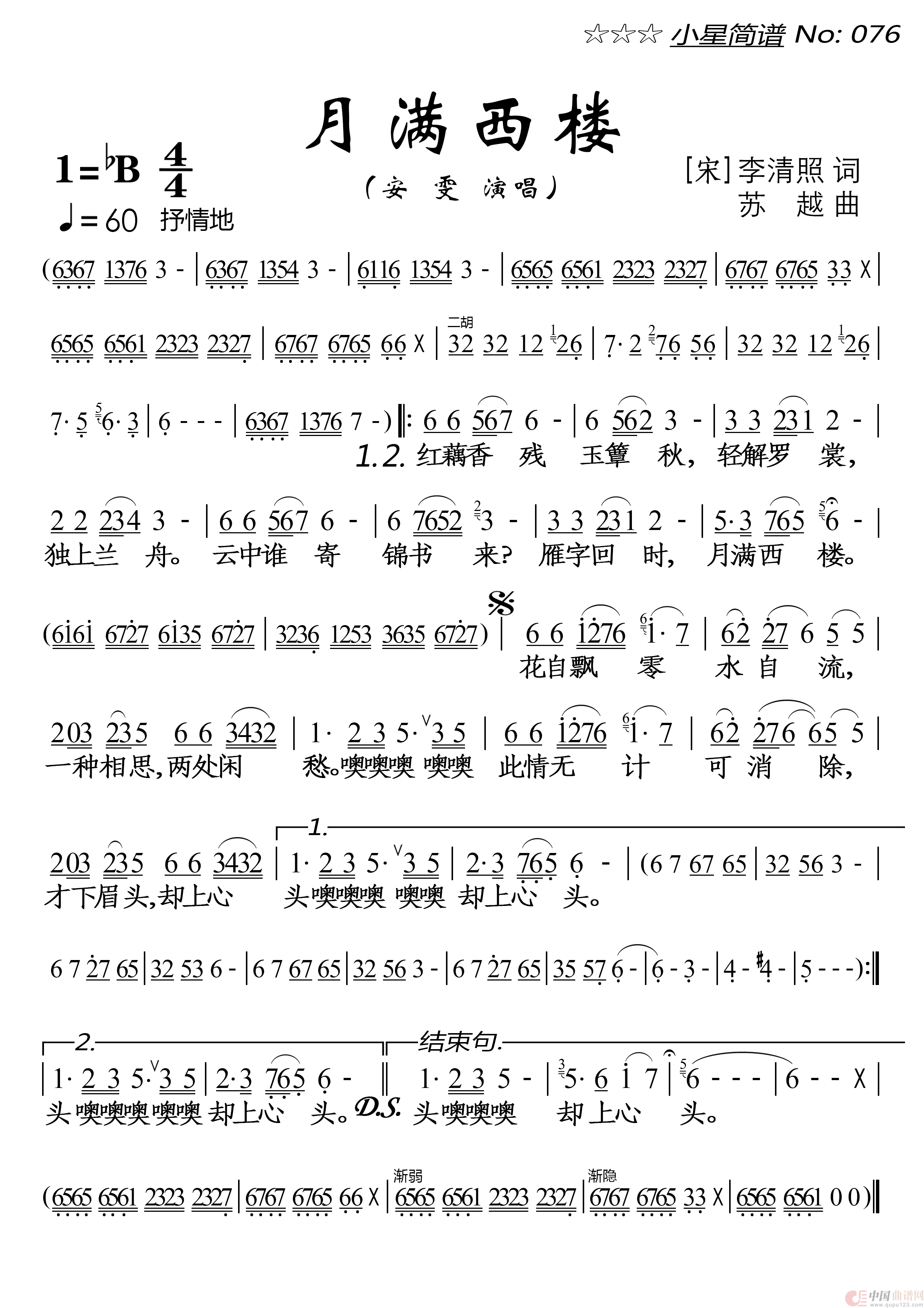 关于《月满西楼》曲谱的评论
