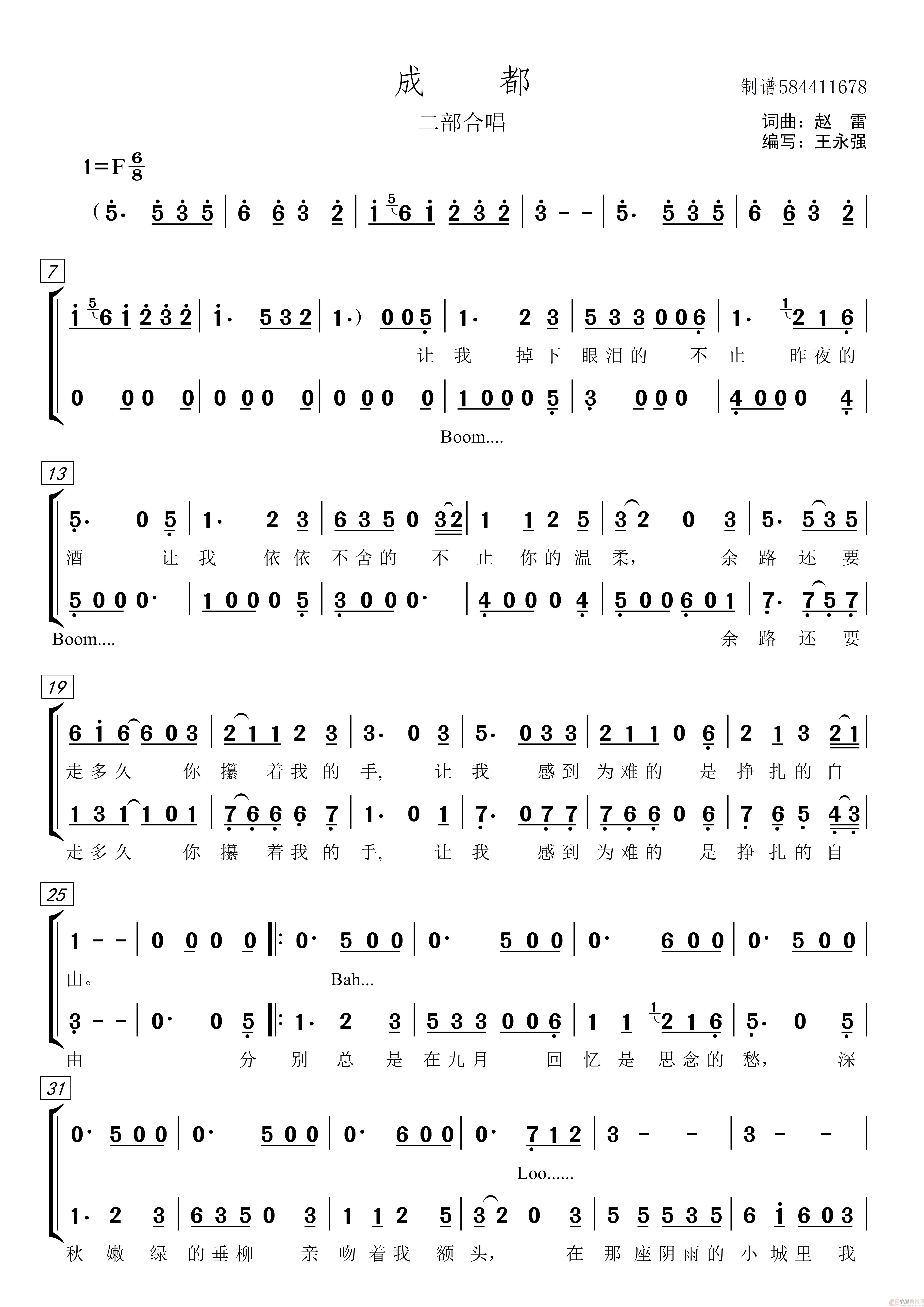 提示:在曲谱图片上单击右键,选择"图片另存为..."即可将曲谱保存到您的电脑中,打印时候可将图片插入到WORD中,调整合适大小打印即可。