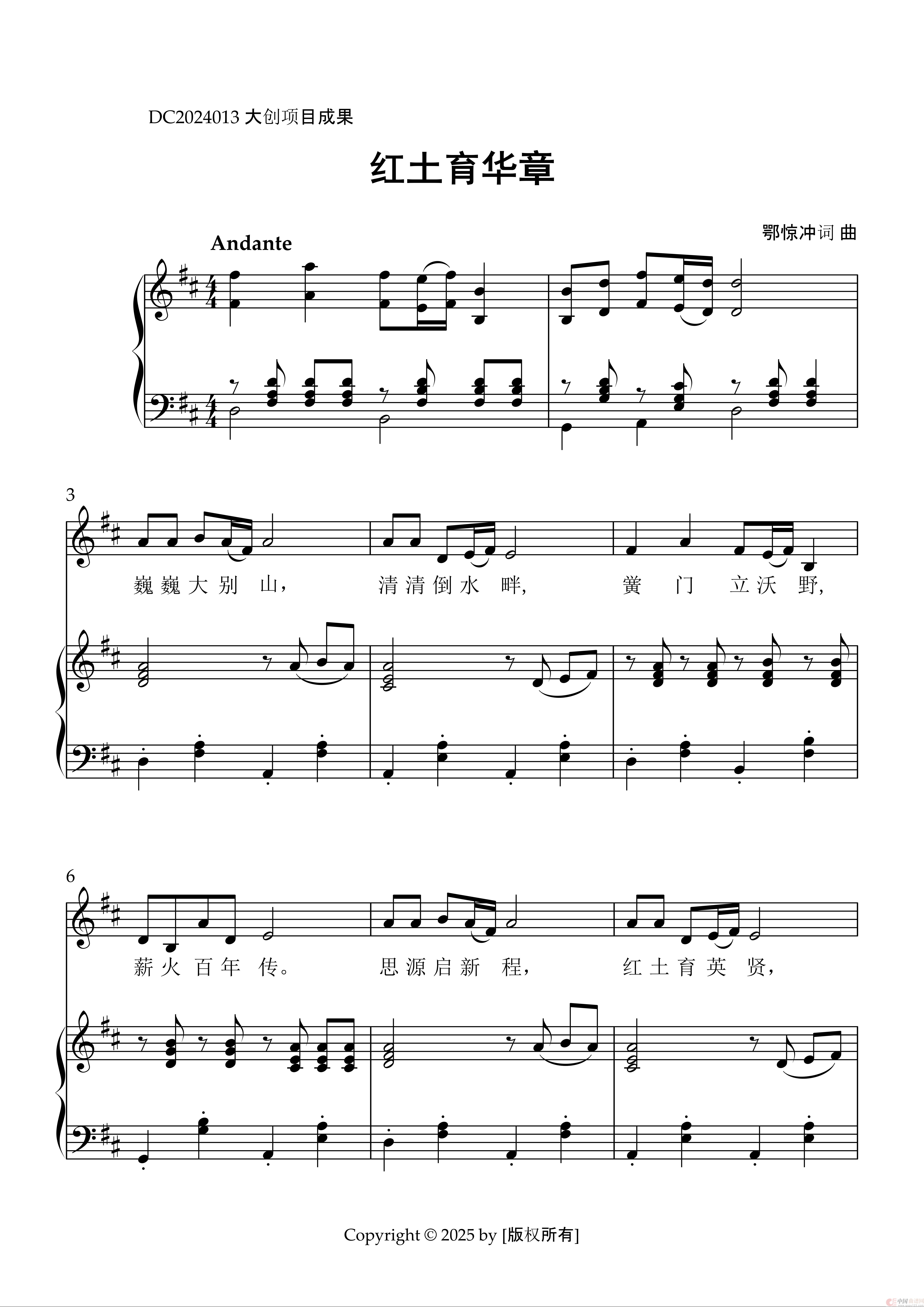 作词:鄂惊冲 作曲:鄂惊冲 来源:谱友程迎接上传 上传:程迎接