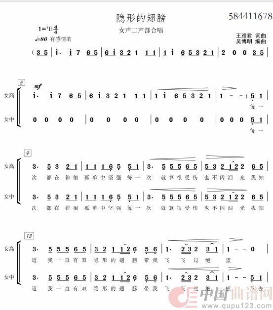 提示:在曲谱图片上单击右键,选择"图片另存为..."即可将曲谱保存到您的电脑中,打印时候可将图片插入到WORD中,调整合适大小打印即可。