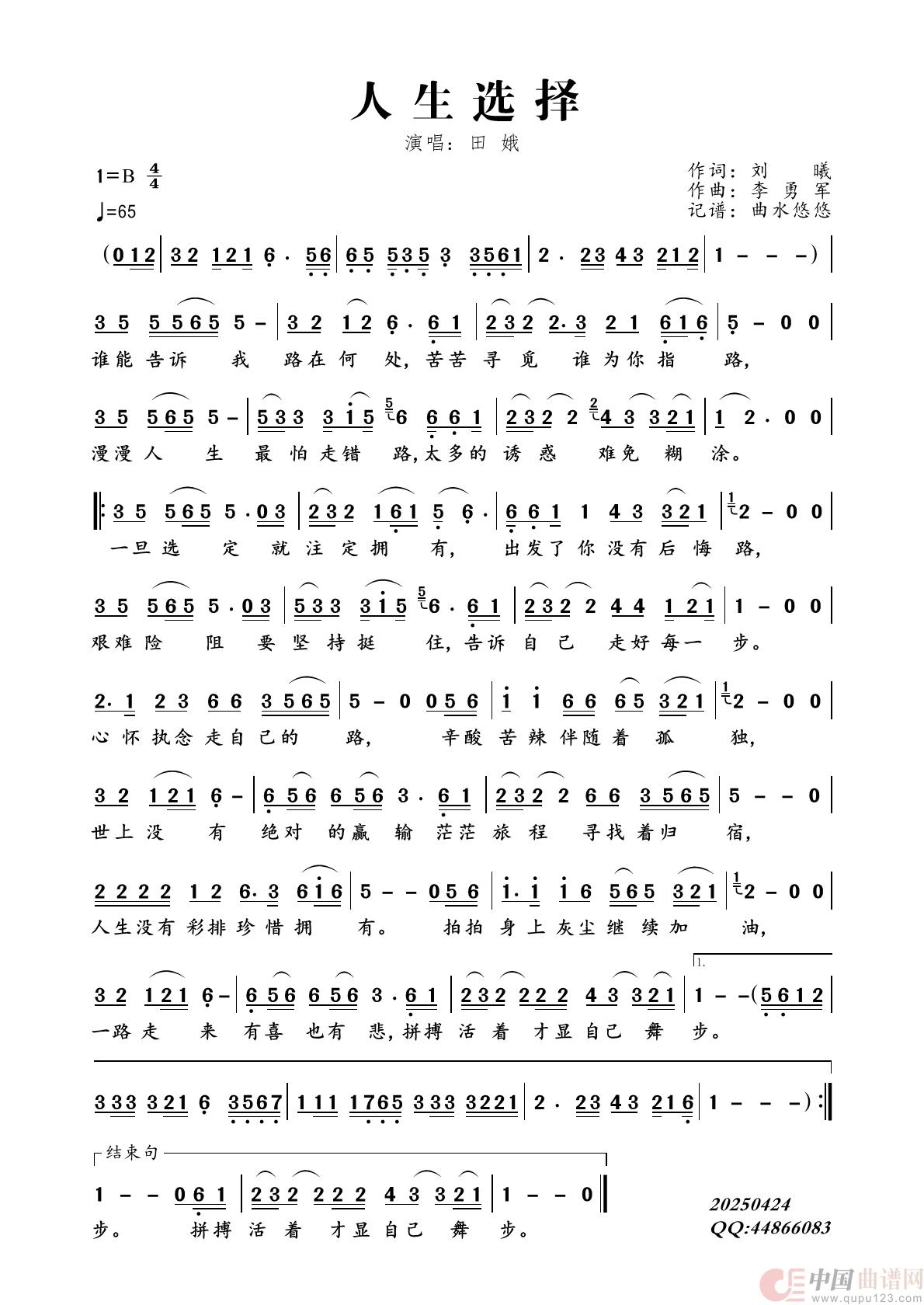 关于《人生选择》曲谱的评论