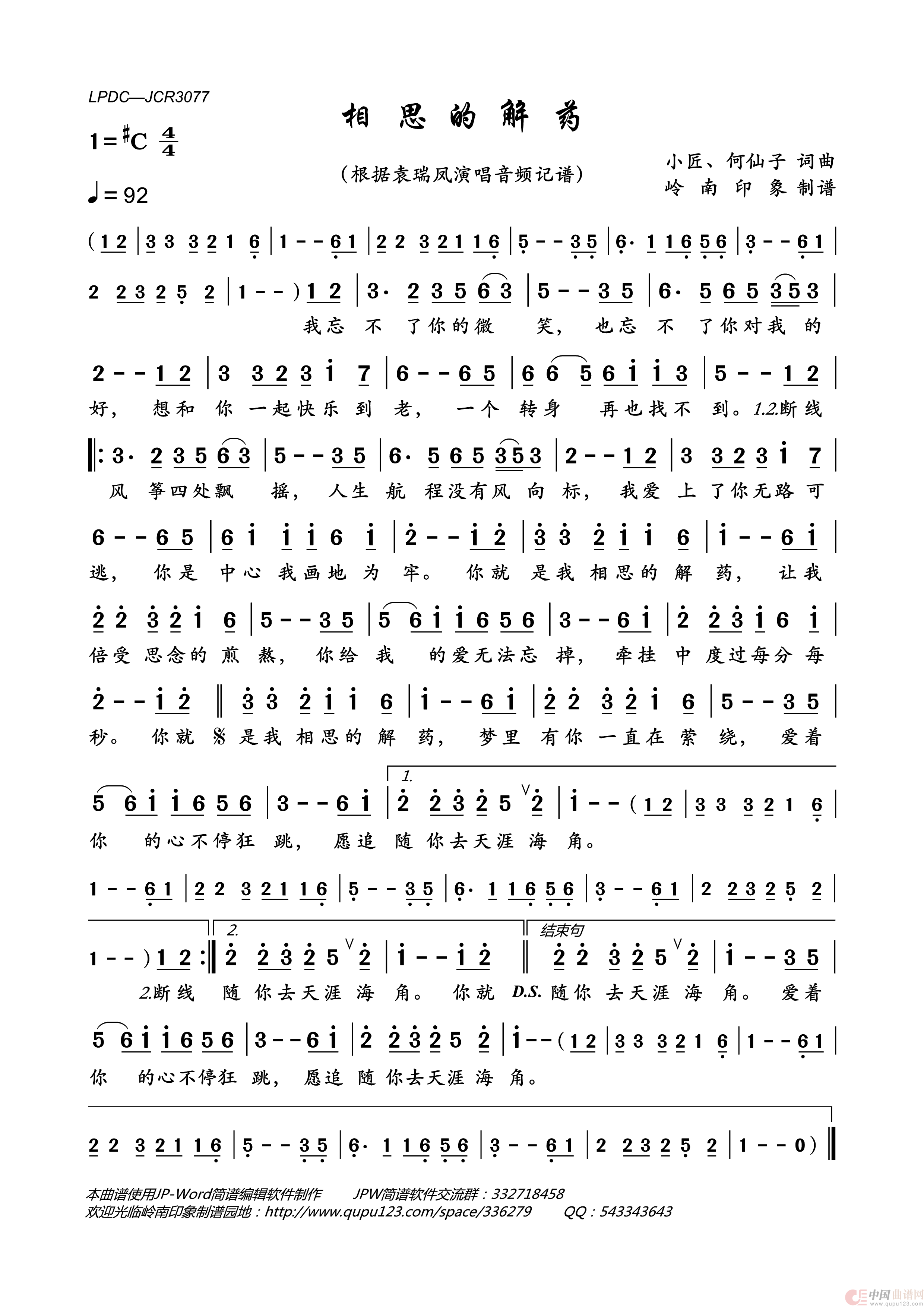 提示:在曲谱图片上单击右键,选择"图片另存为..."即可将曲谱保存到您的电脑中,打印时候可将图片插入到WORD中,调整合适大小打印即可。