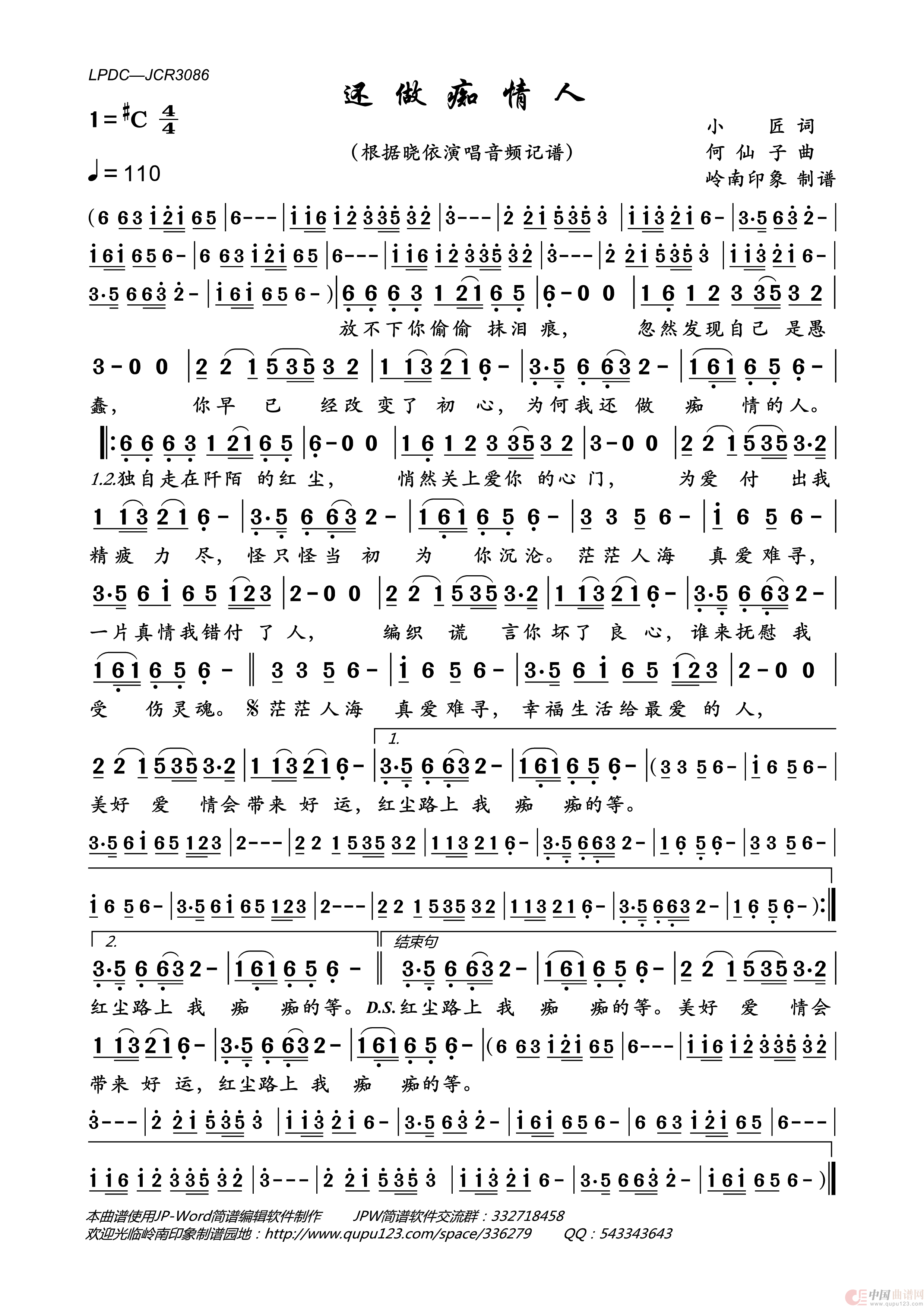 提示:在曲谱图片上单击右键,选择"图片另存为..."即可将曲谱保存到您的电脑中,打印时候可将图片插入到WORD中,调整合适大小打印即可。