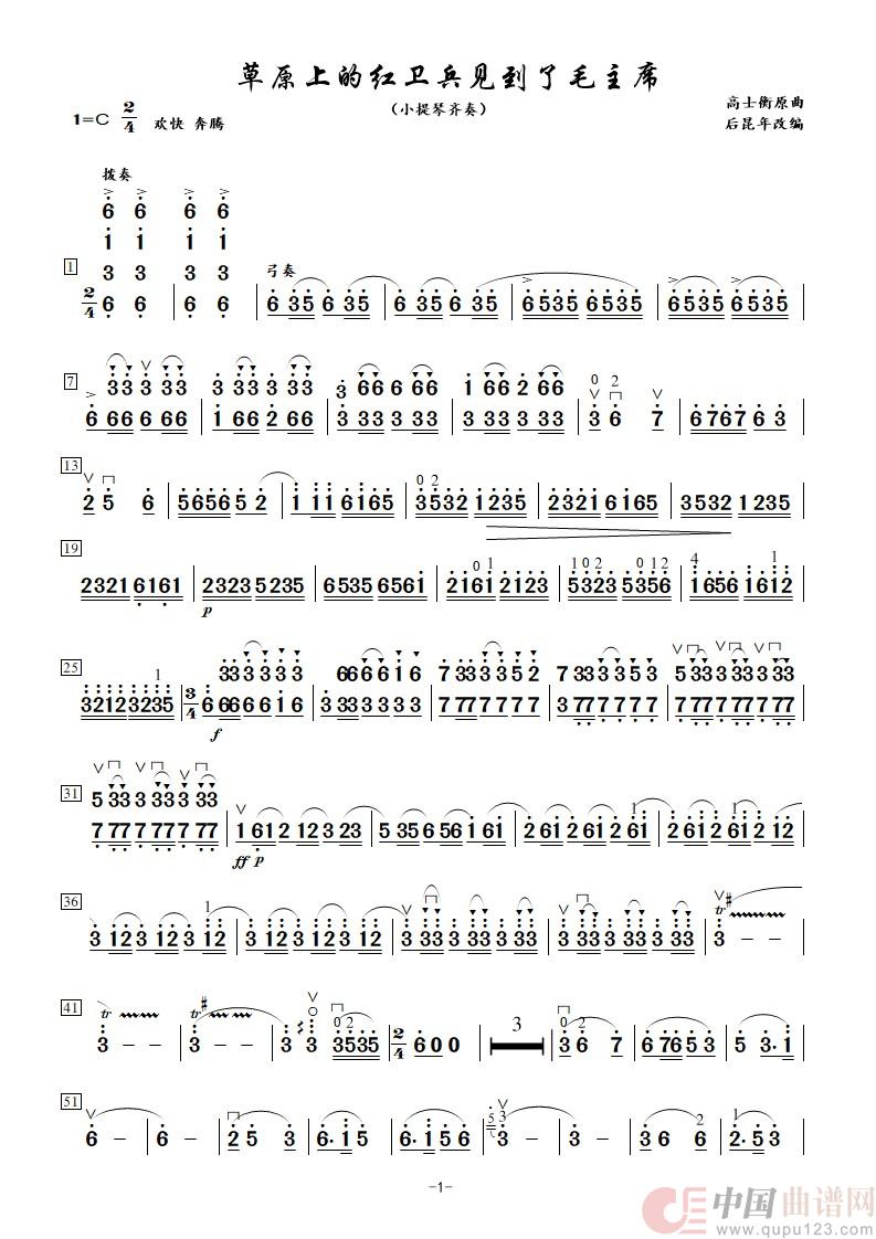 草原上的红卫兵见到了毛主席(小提琴齐奏曲(简谱+线谱))