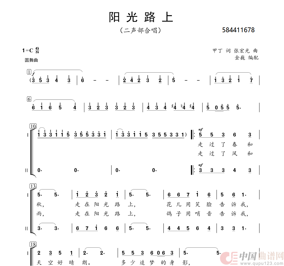 提示:在曲谱图片上单击右键,选择"图片另存为..."即可将曲谱保存到您的电脑中,打印时候可将图片插入到WORD中,调整合适大小打印即可。