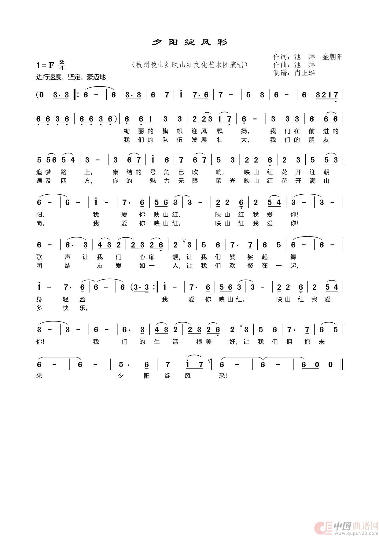 作词:池湃 作曲:池湃 演唱(奏):杭州映山红文化艺术团 来源:自己记谱制谱 上传:东湖摄影摄像19530122