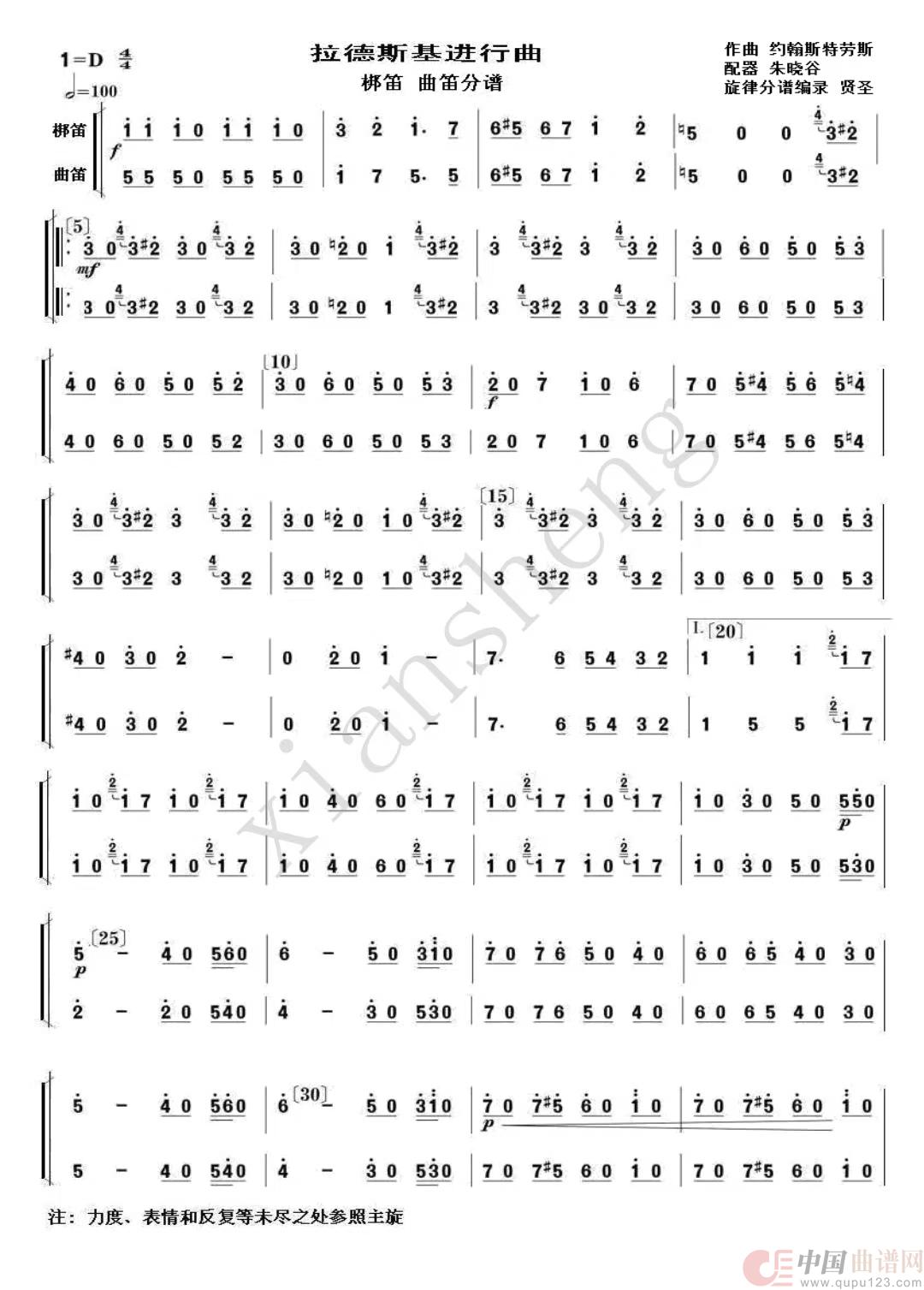 拉德斯基进行曲(民族器乐合奏 梆笛曲笛分谱)