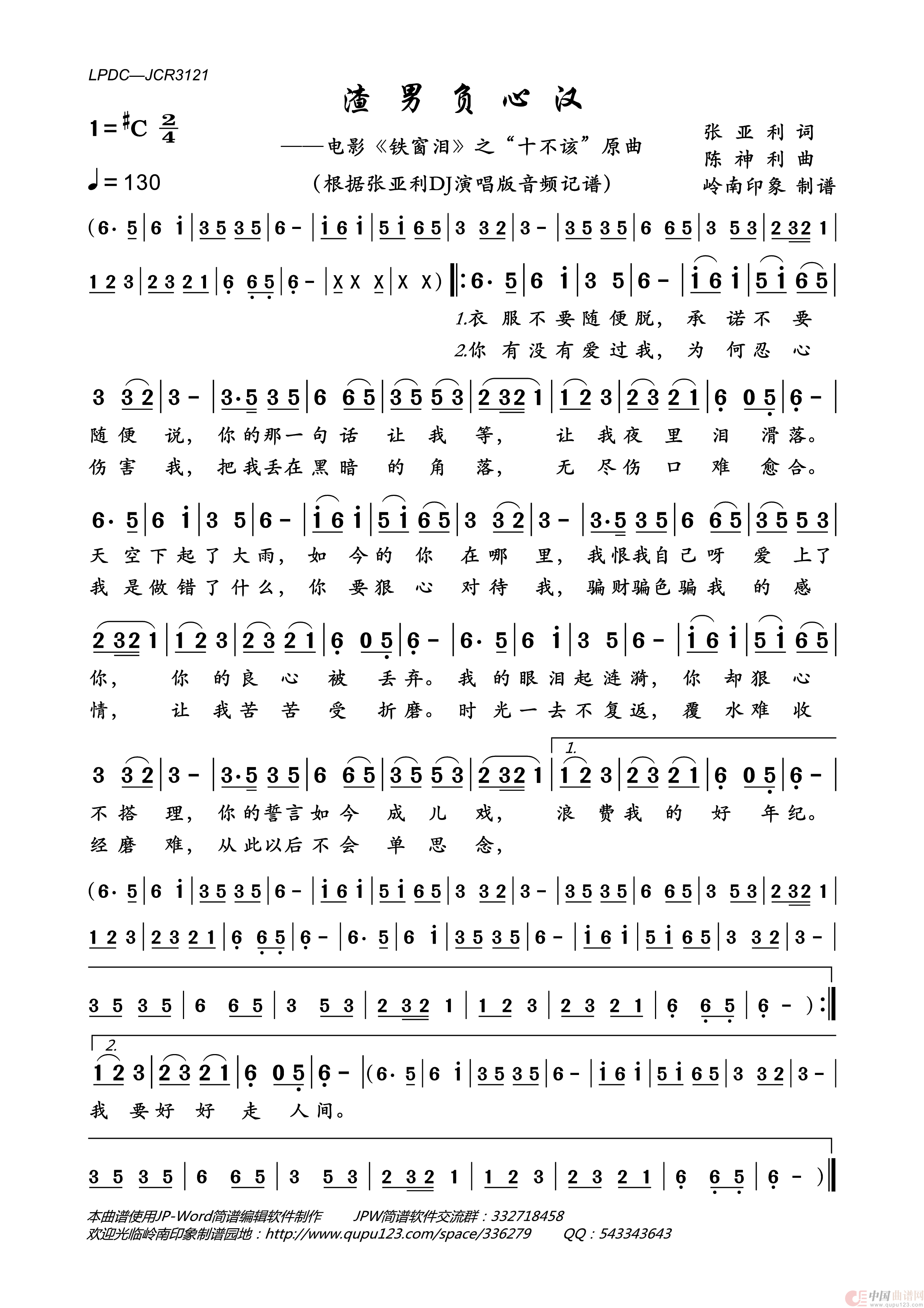 《渣男负心汉》文本歌词