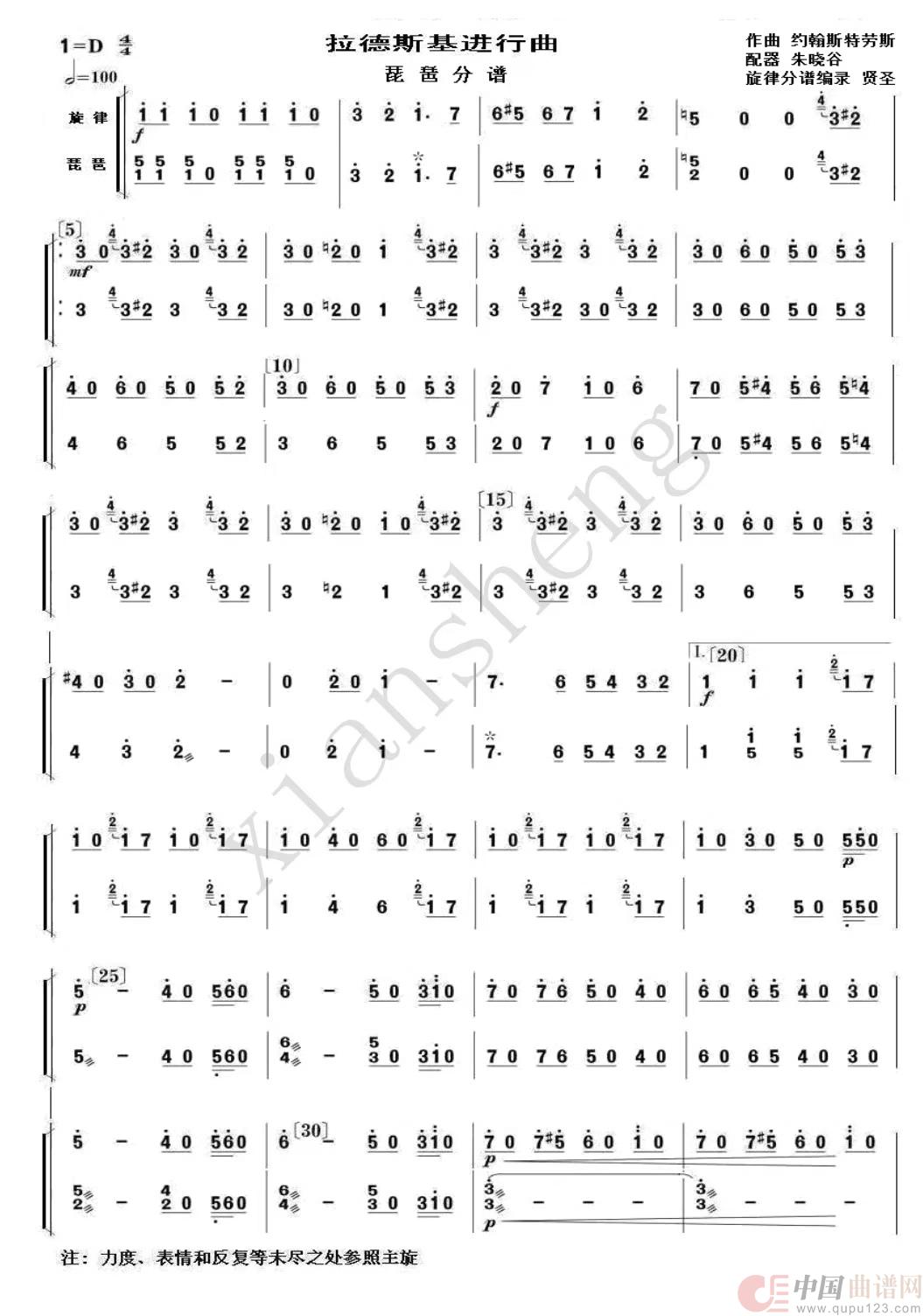 拉德斯基进行曲(民族器乐合奏 琵琶分谱)