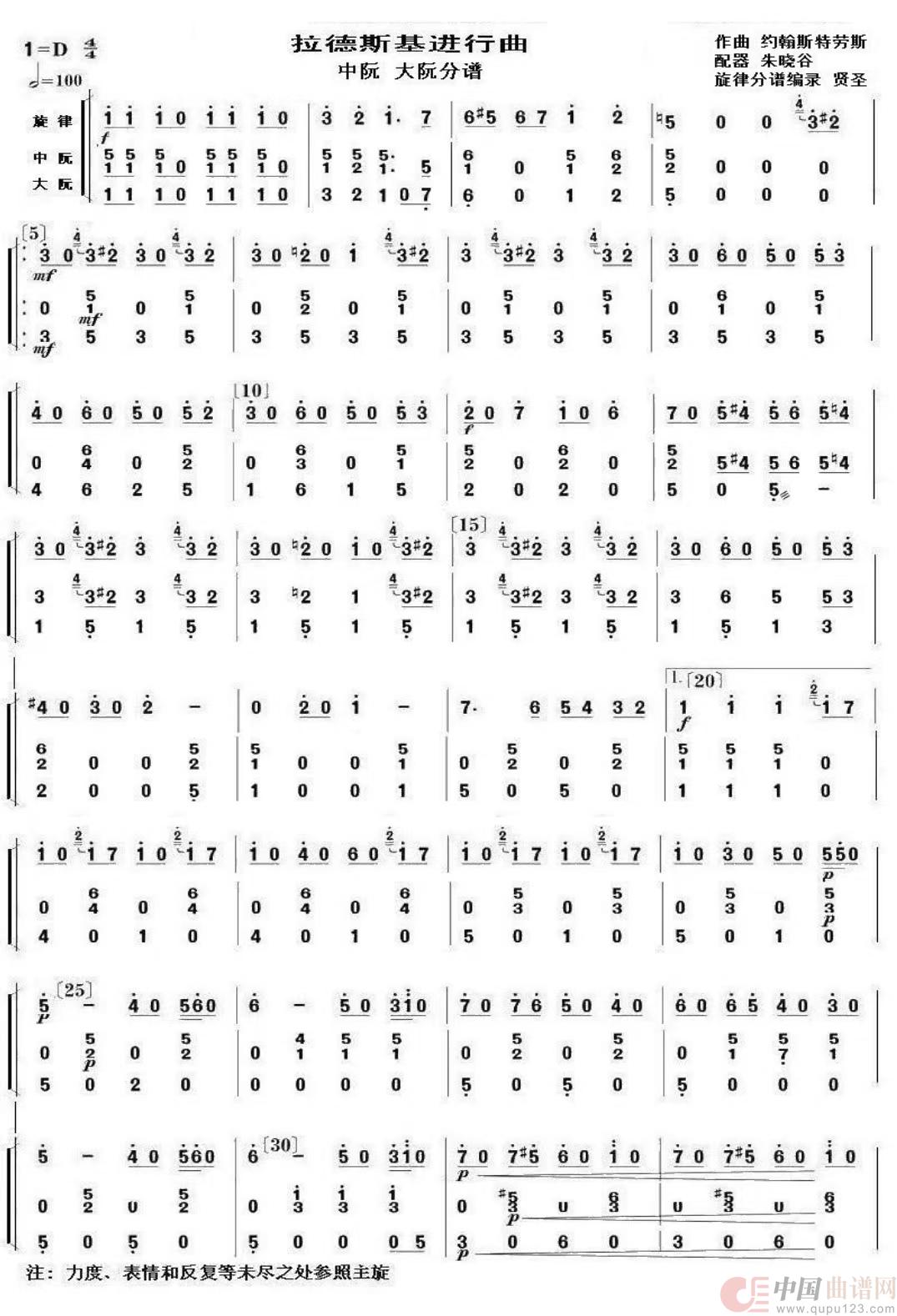 拉德斯基进行曲(民族器乐合奏 大阮中阮分谱)
