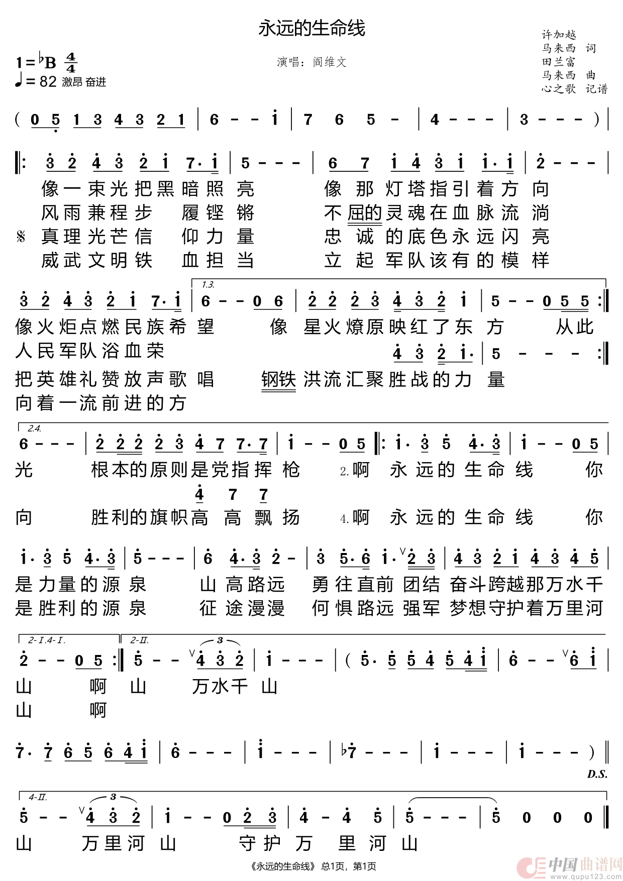 关于《永远的生命线》曲谱的评论