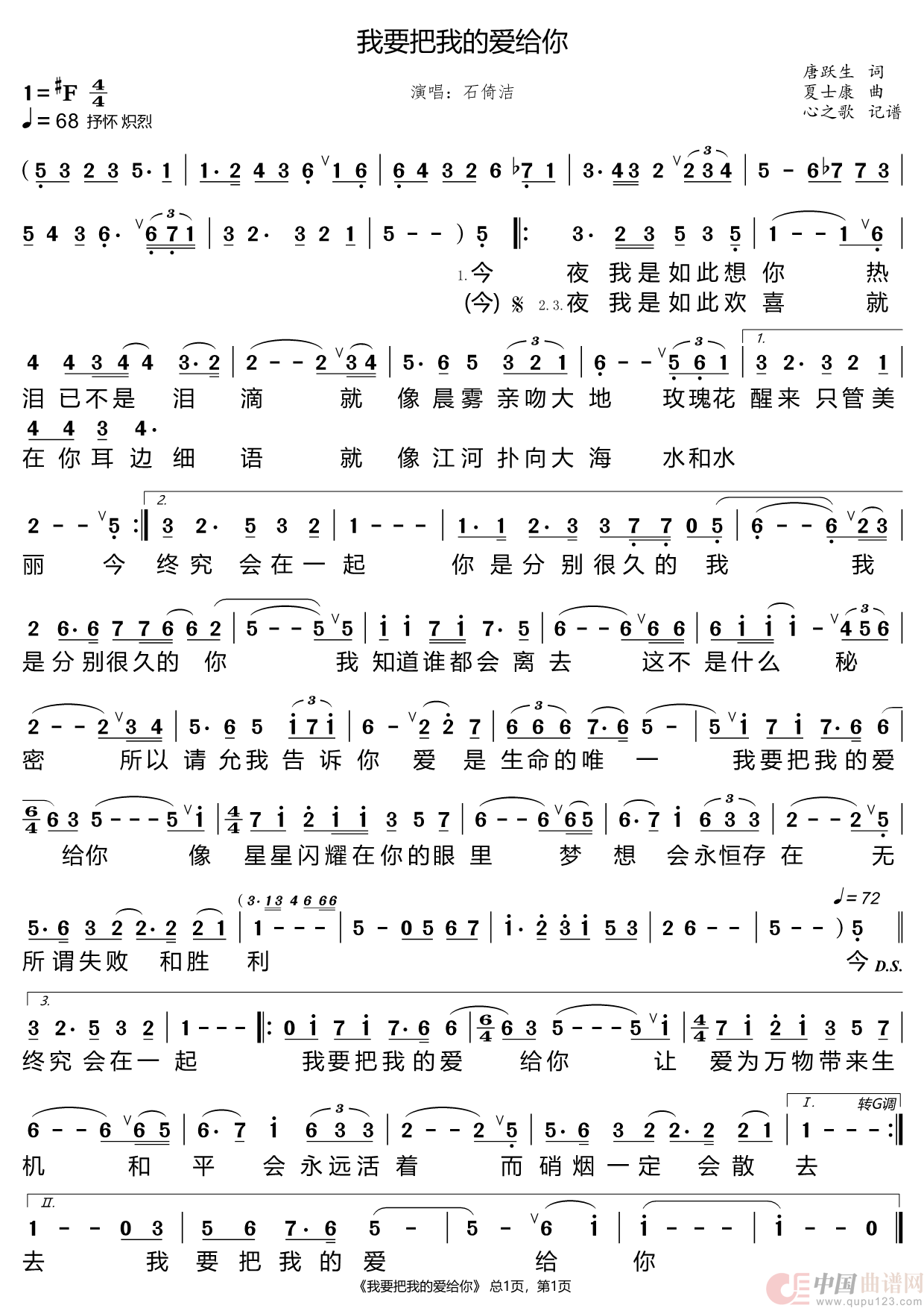 关于《我要把我的爱给你》曲谱的评论