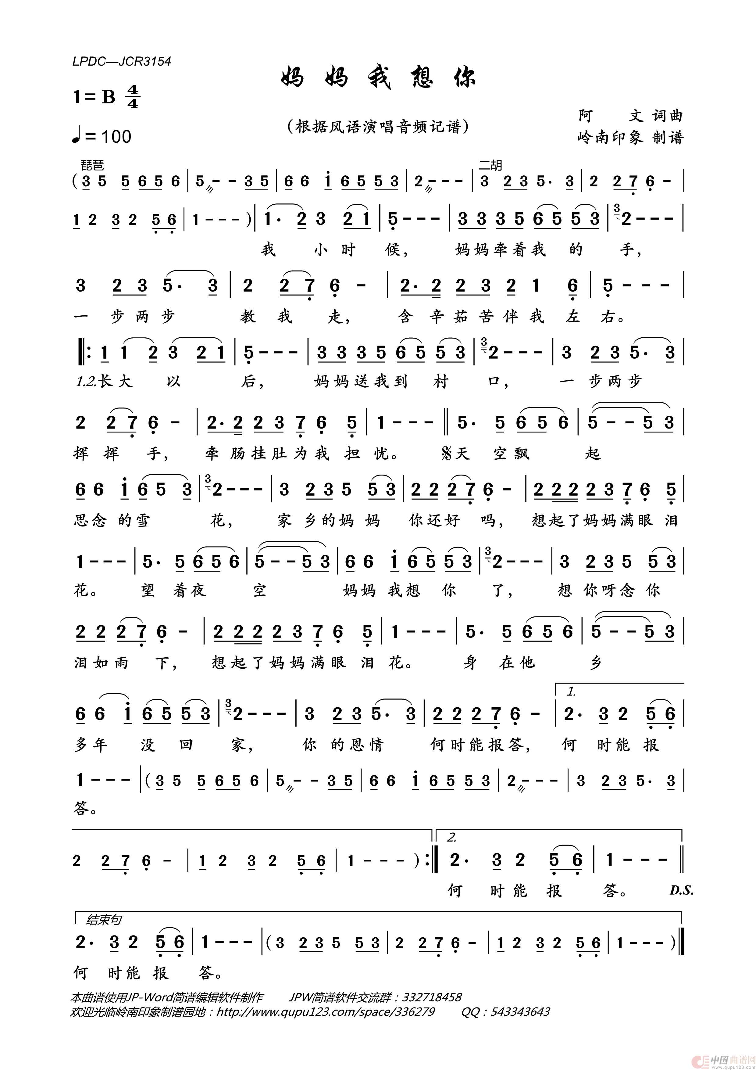 提示:在曲谱图片上单击右键,选择"图片另存为..."即可将曲谱保存到您的电脑中,打印时候可将图片插入到WORD中,调整合适大小打印即可。
