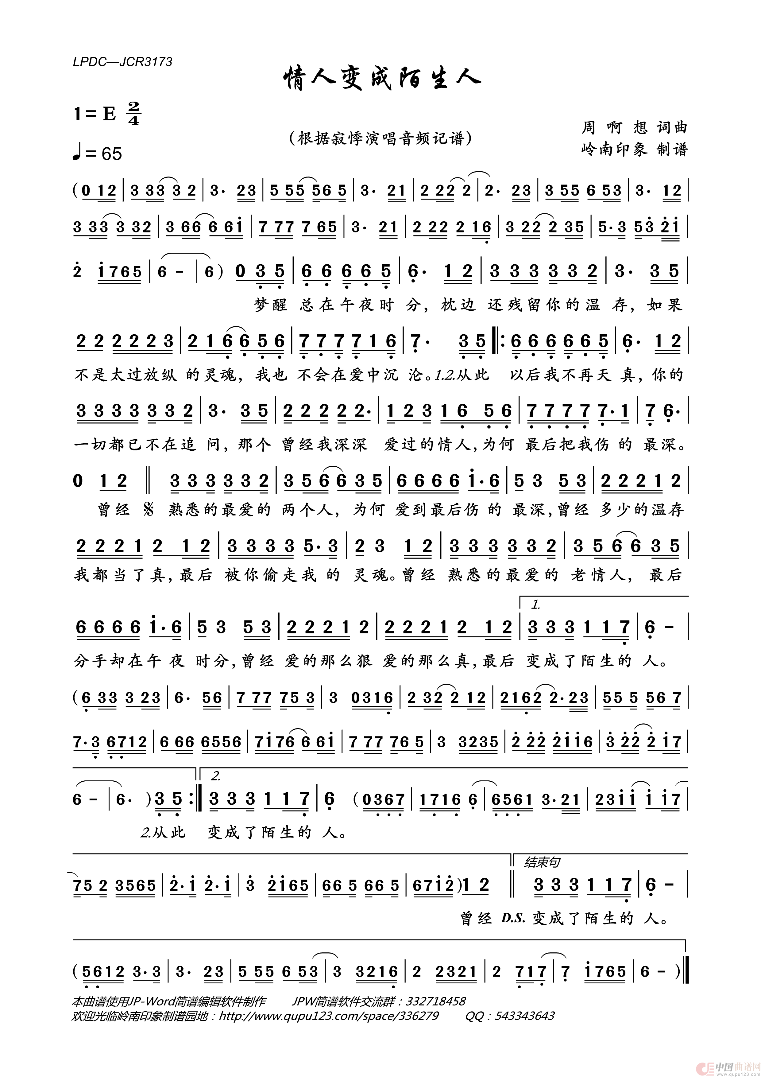 《情人变成陌生人》文本歌词