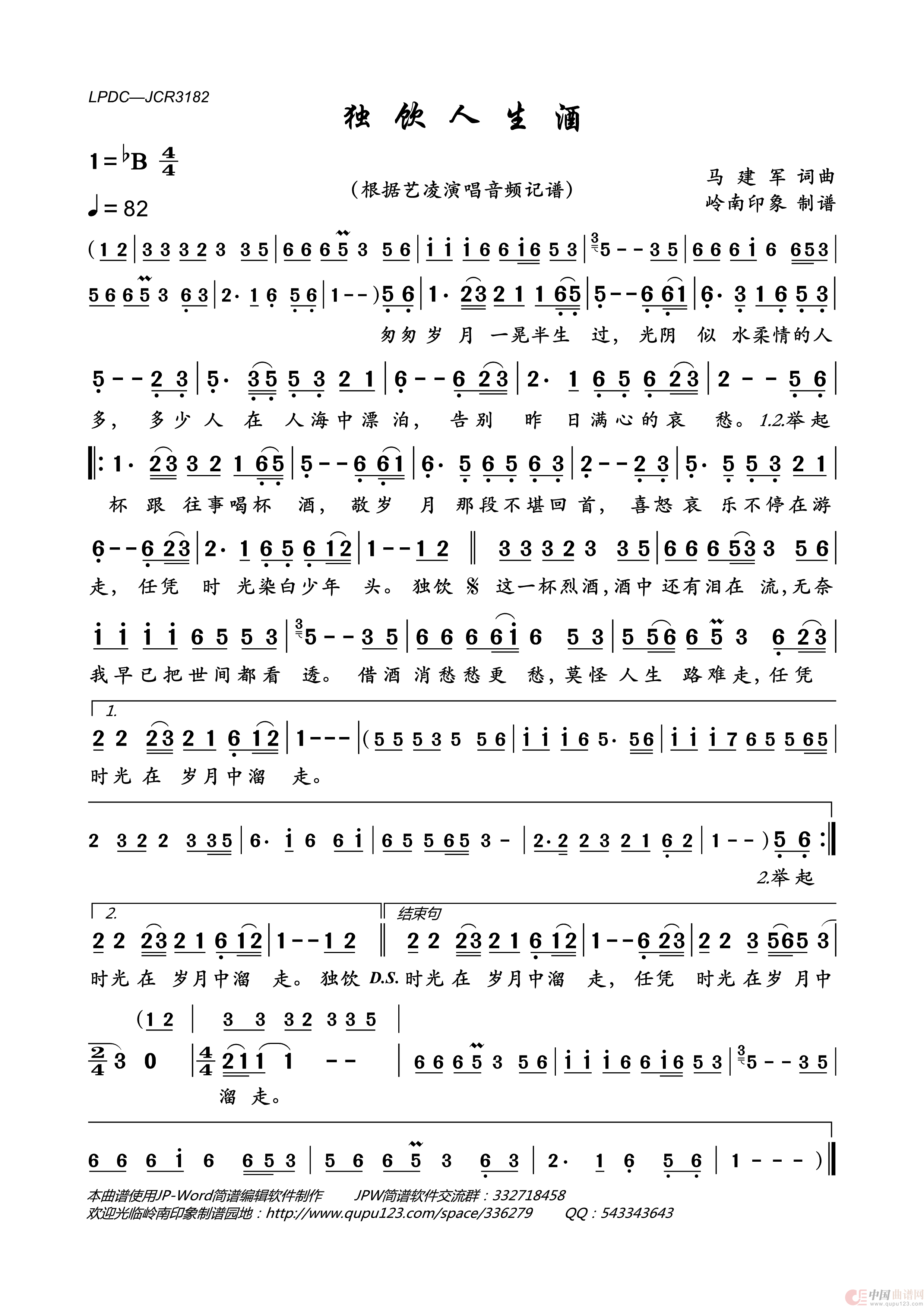 《独饮人生酒》文本歌词