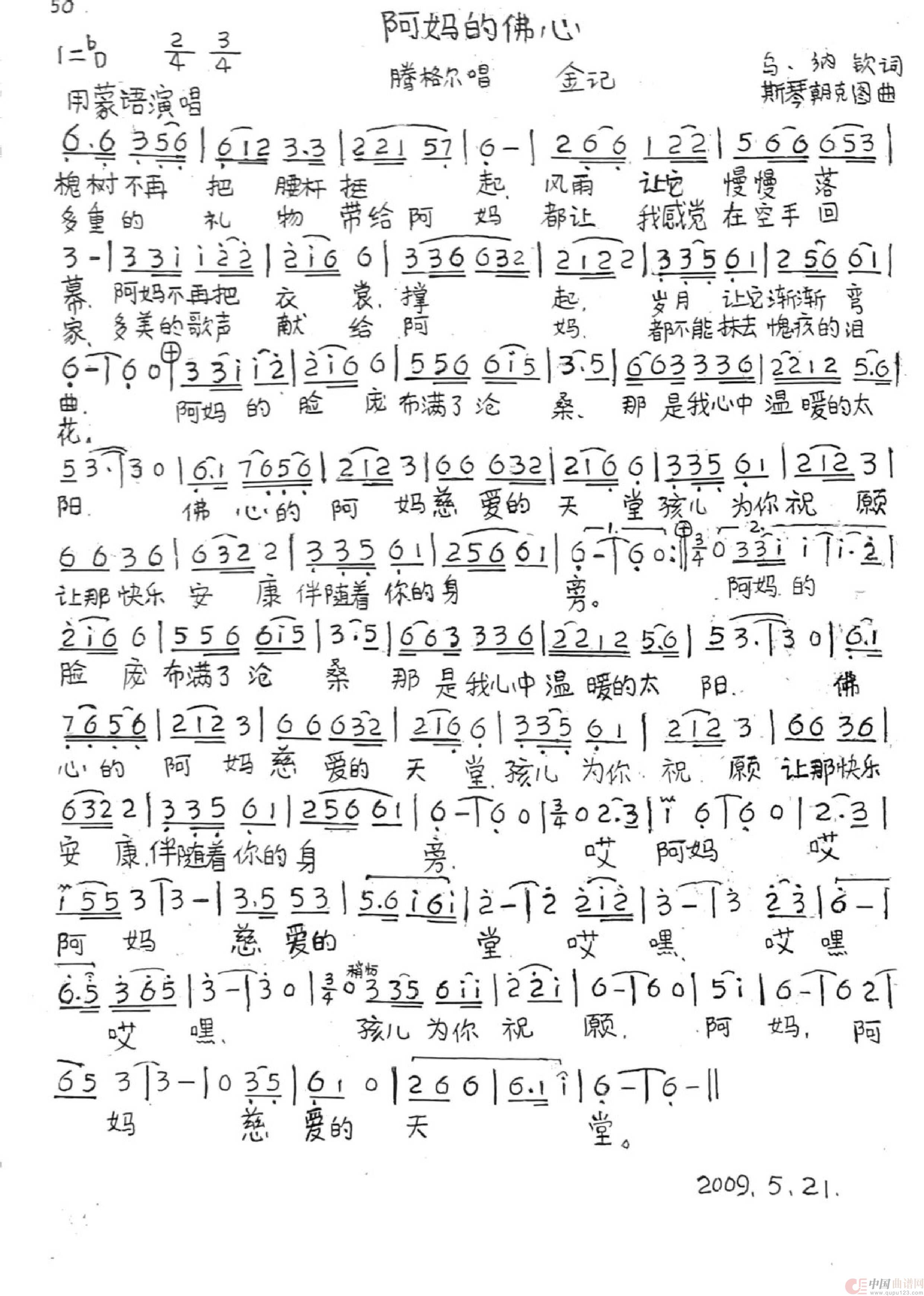 关于《阿妈的佛心》曲谱的评论