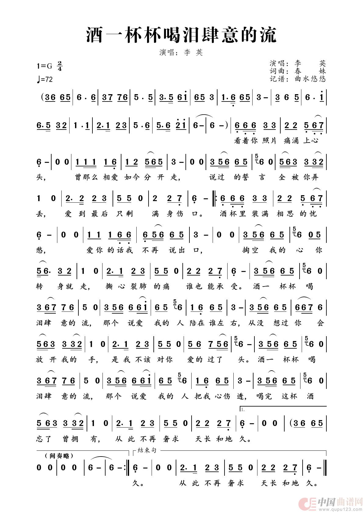 关于《酒一杯杯喝泪肆意的流》曲谱的评论
