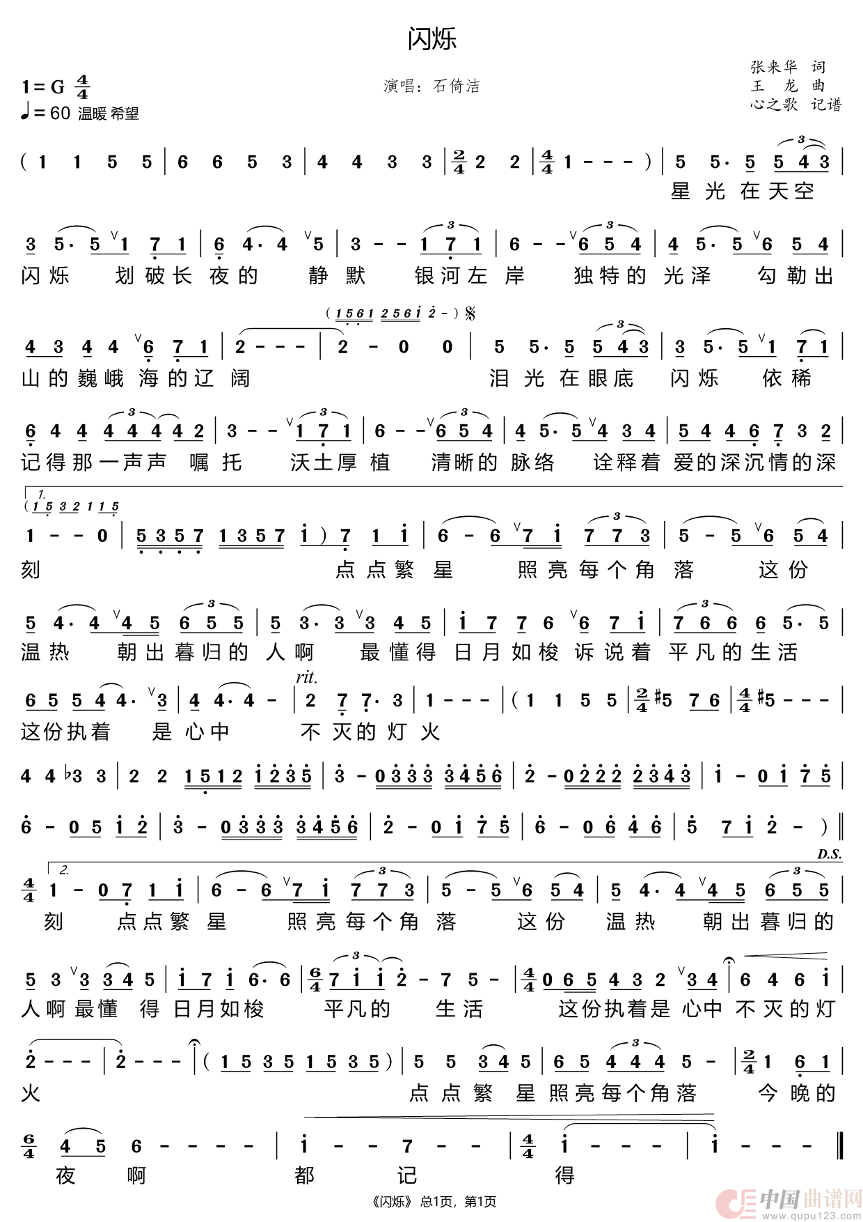 关于《闪烁》曲谱的评论