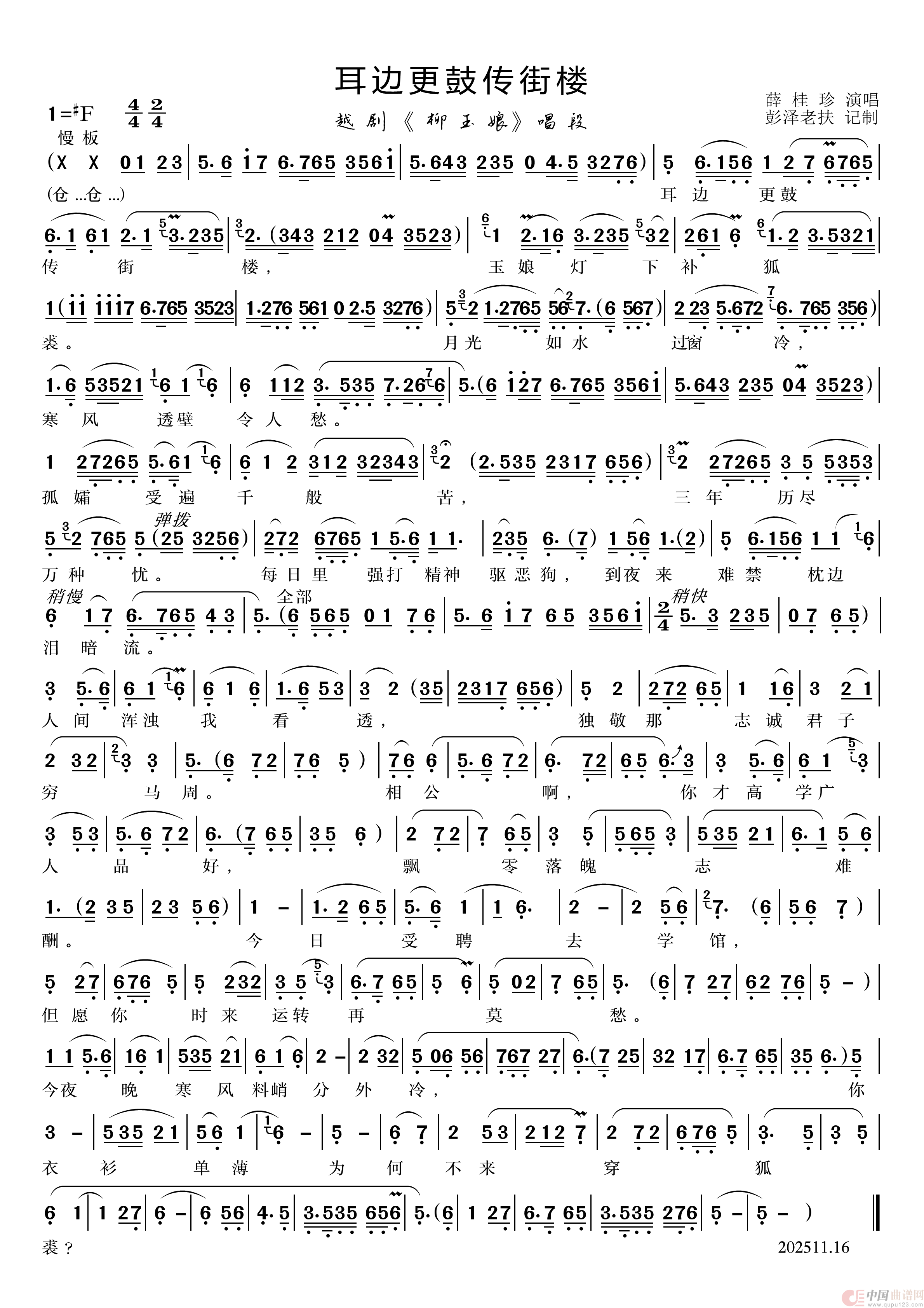 关于《耳边更鼓传街楼》曲谱的评论
