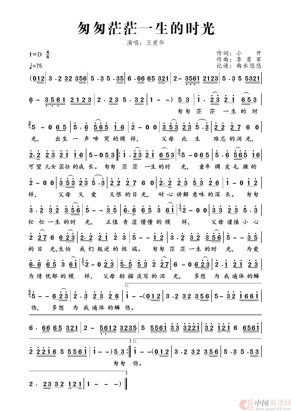 关于《匆匆茫茫一生的时光》曲谱的评论
