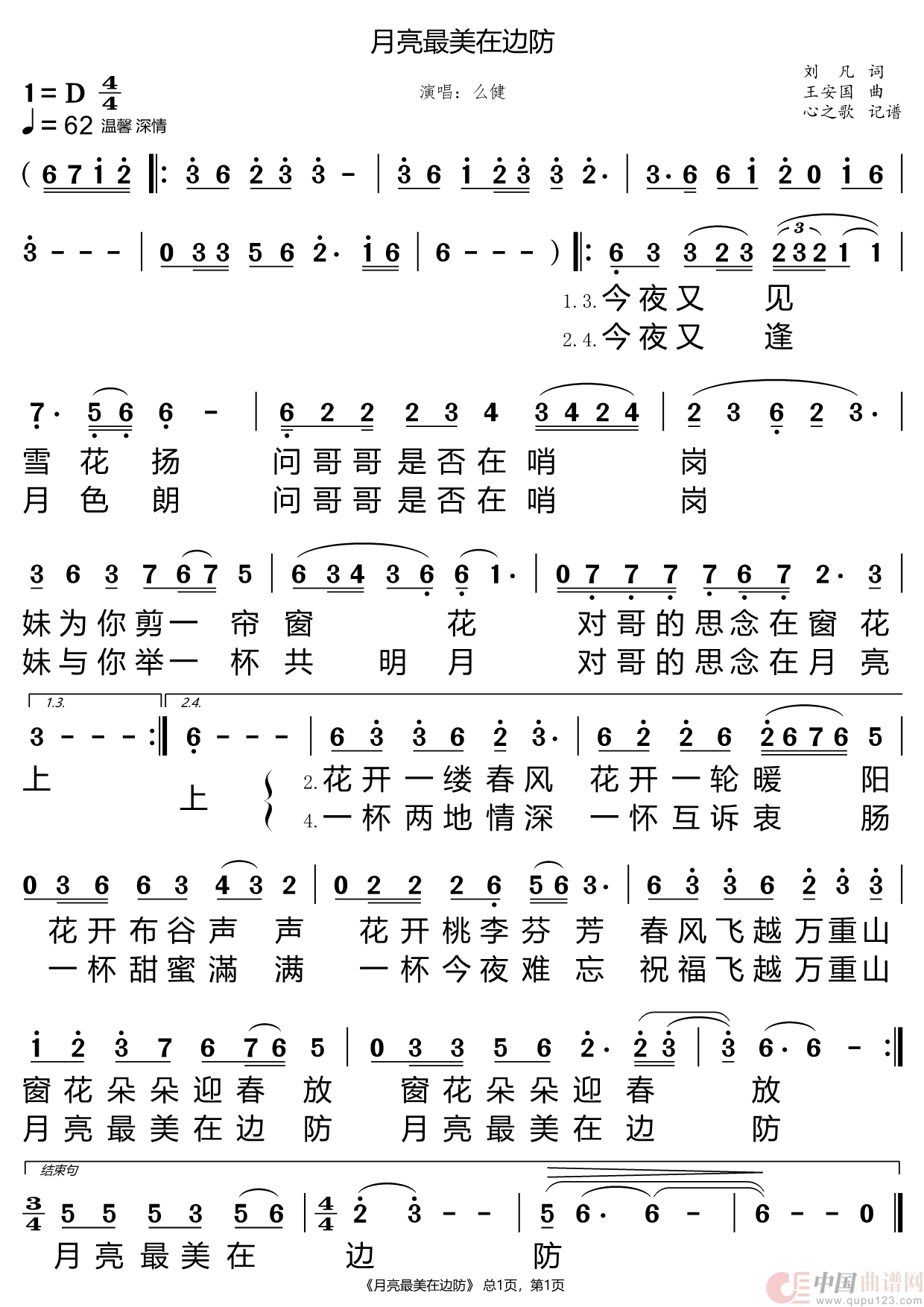 关于《月亮最美在边防》曲谱的评论