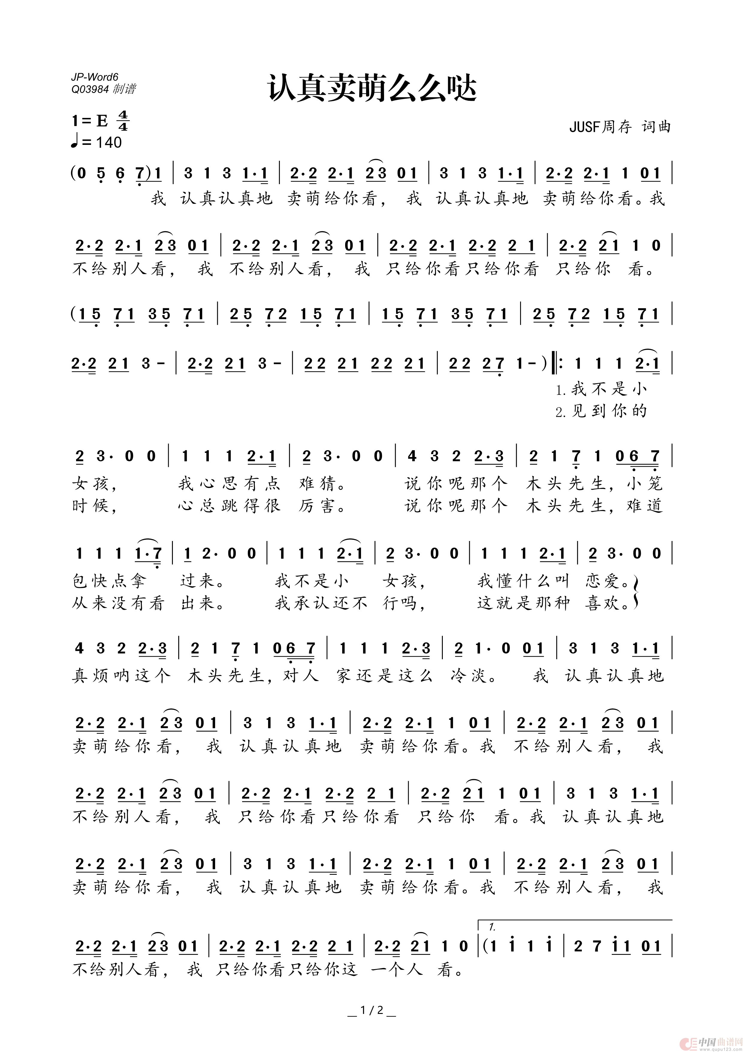 关于《认真卖萌么么哒》曲谱的评论