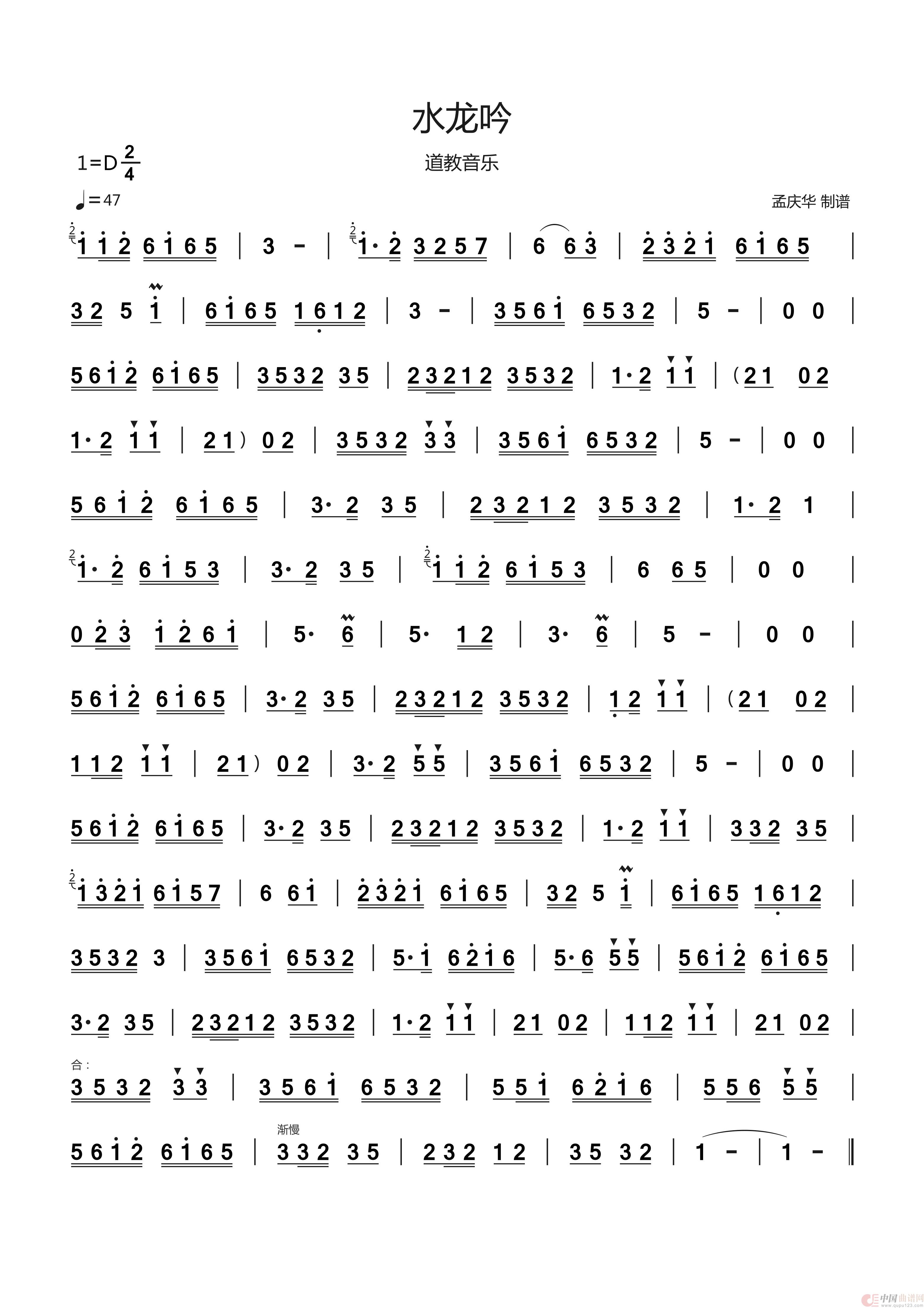 提示:在曲谱图片上单击右键,选择"图片另存为..."即可将曲谱保存到您的电脑中,打印时候可将图片插入到WORD中,调整合适大小打印即可。