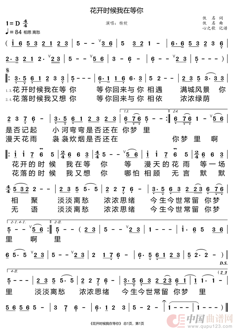 提示:在曲谱图片上单击右键,选择"图片另存为..."即可将曲谱保存到您的电脑中,打印时候可将图片插入到WORD中,调整合适大小打印即可。
