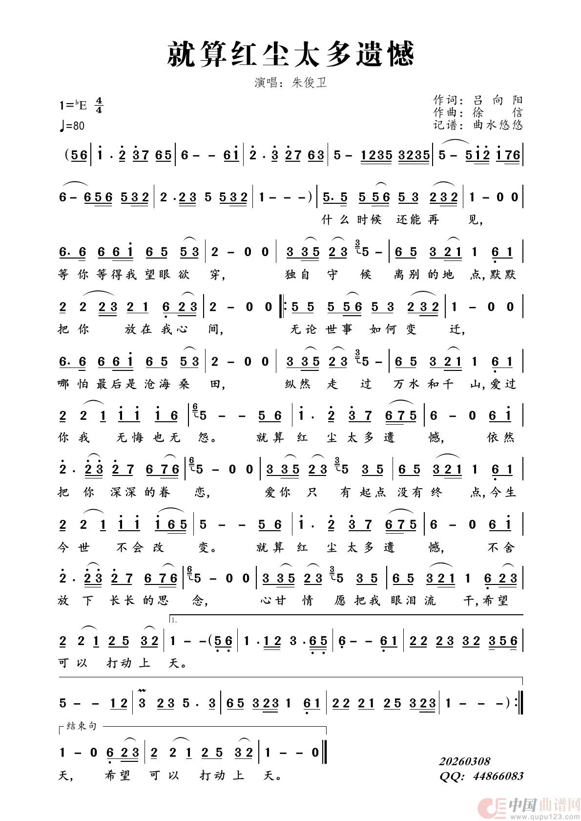 关于《就算红尘太多遗憾》曲谱的评论