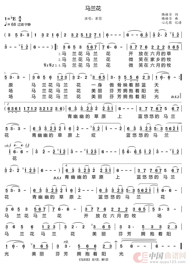 提示:在曲谱图片上单击右键,选择"图片另存为..."即可将曲谱保存到您的电脑中,打印时候可将图片插入到WORD中,调整合适大小打印即可。